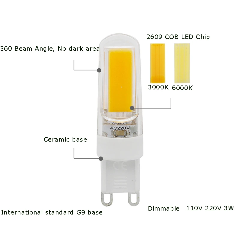 6 упаковок G9 светодиодный ная лампа COB 220V 110V 3W с регулируемой яркостью светодиодсветодиодный лампа G9 Bombillas 2609 светодиодный Lampe Luz 4000K заменить 30 Вт галогенная люстра