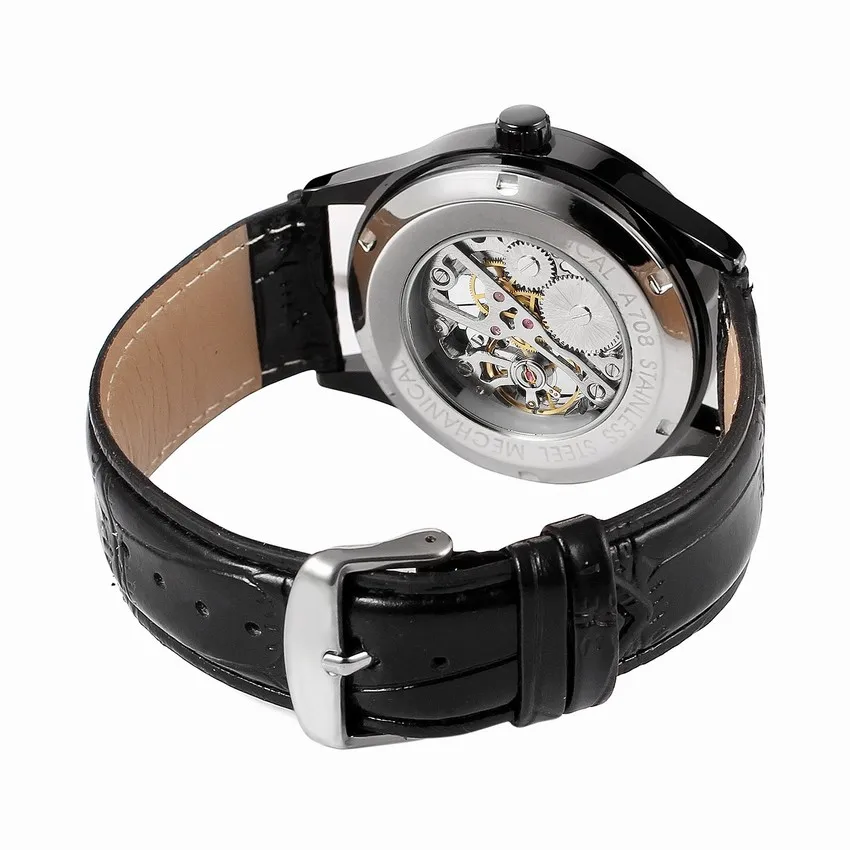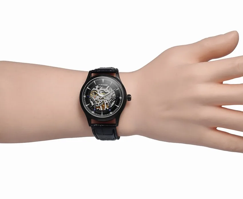 Часы наручные Winner Мужские механические, брендовые Роскошные, полностью золотистые, с черными стрелками, подарок на Рождество, 2018