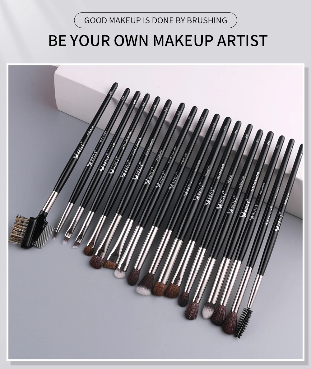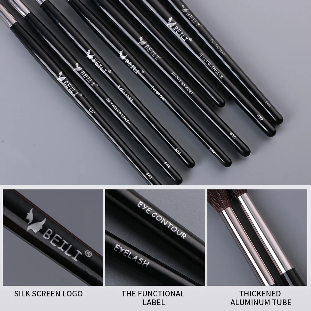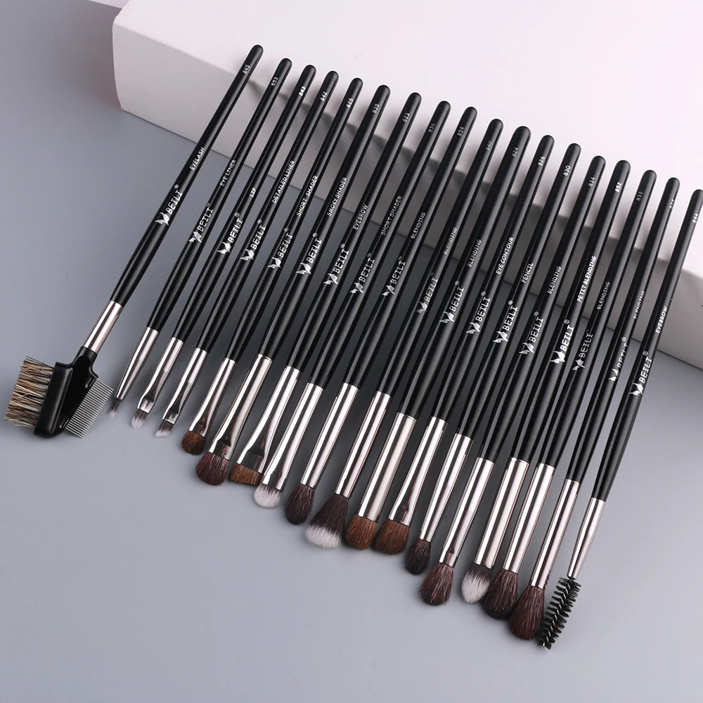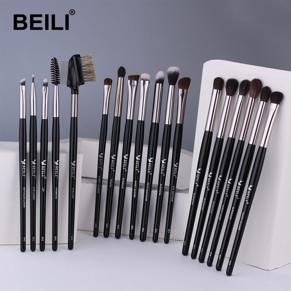Набор кистей для макияжа BEILI, профессиональные черные кисточки для растушевки бровей и подводки глаз, из козы и пони, 18 шт.