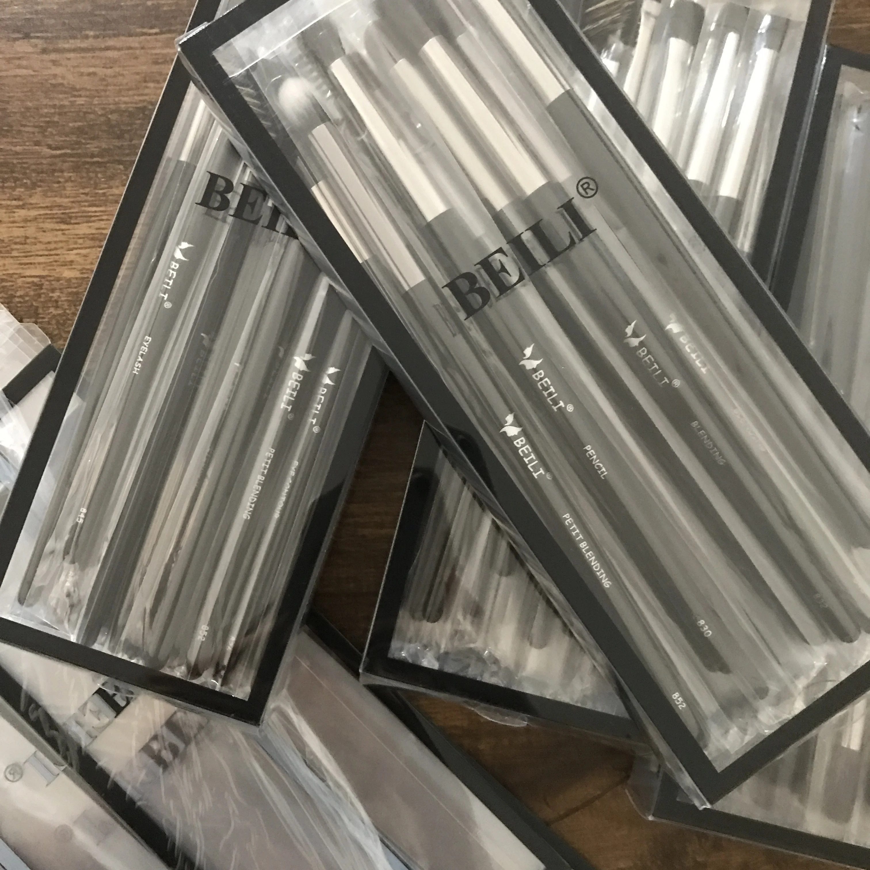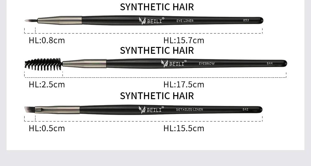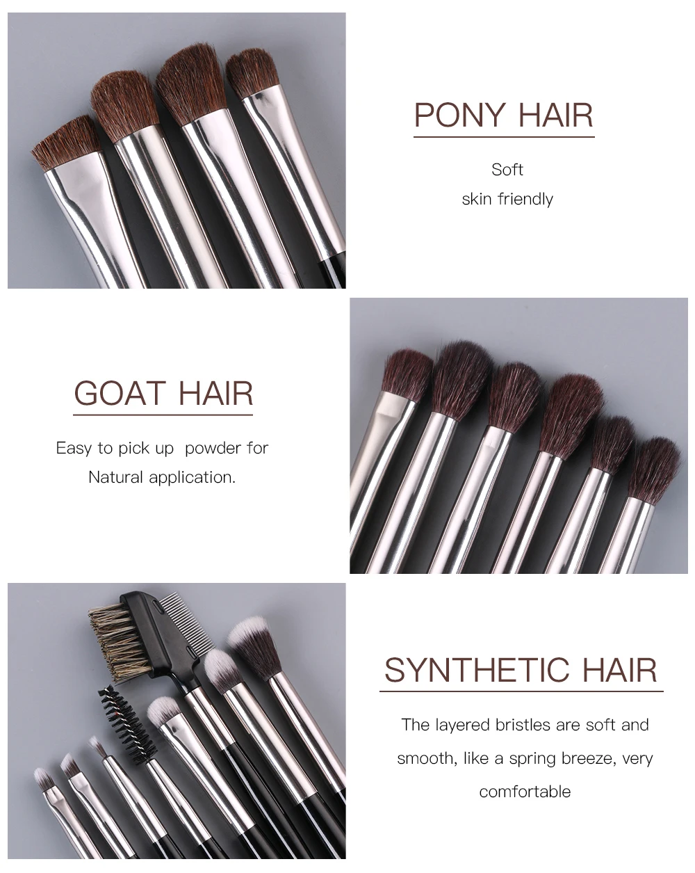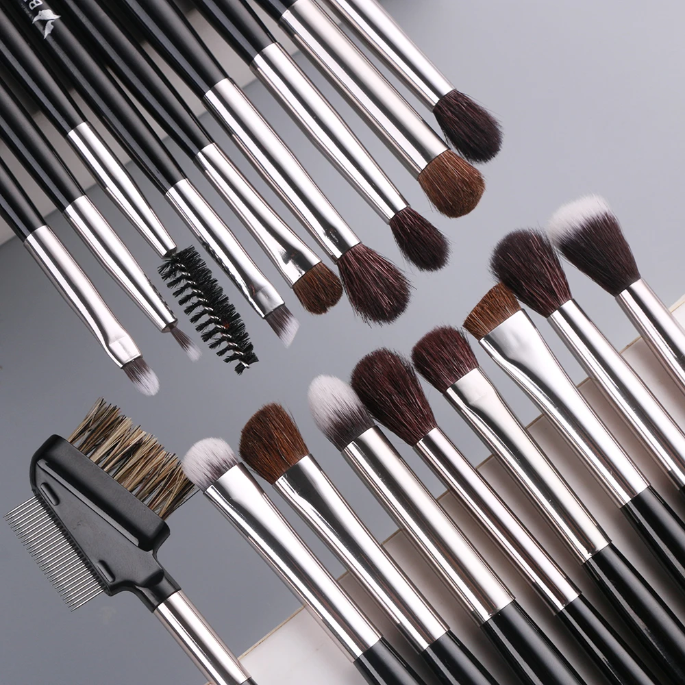 Набор кистей для макияжа BEILI, профессиональные черные кисточки для растушевки бровей и подводки глаз, из козы и пони, 18 шт.