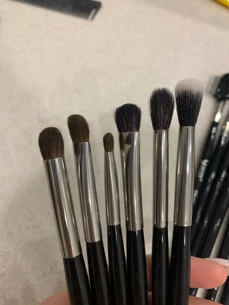 Кисти очень хорошие , за такую цену тем более. Натуральные кисти при мытьё не много линяли , не не сильно , это не критично , мне кажется при повторном уже не будут. Натуральные кисти наносят плотно , даже не сильно пигментированые тени. Очень советую к покупке, жаль что нету натуральной кисти в виде бочонка или более мелких набитых , но это мелкие придирки. ( второе фото к сравнению слева натуральной кистью нанесено , справа синтетикой )