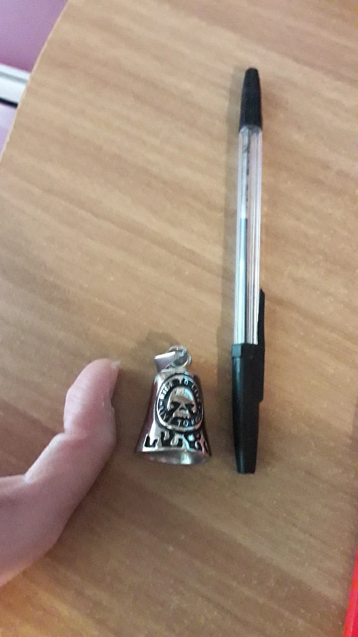 Красивый колокольчик Guardian, точно такой же, как на картинке! Он тяжелый, он совсем не выглядит как что-то дешевое. Он также очень маленький, идеально подходит для подвешивания под велосипедом (посмотрите изображения для сравнения с большим пальцем и ручкой). Мне нравится!