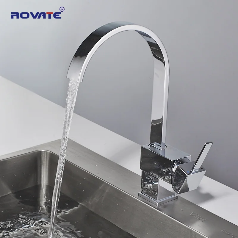 Смеситель для кухни ROVATE, квадратный хромированный кран с одной ручкой, Поворот на 360 градусов, водопроводный кран для раковины