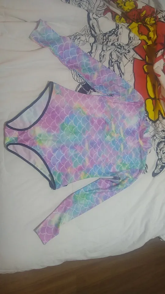 Купальник NADANBAO женский сплошной, Раздельный купальник с длинным рукавом, на молнии, купальник с принтом русалка