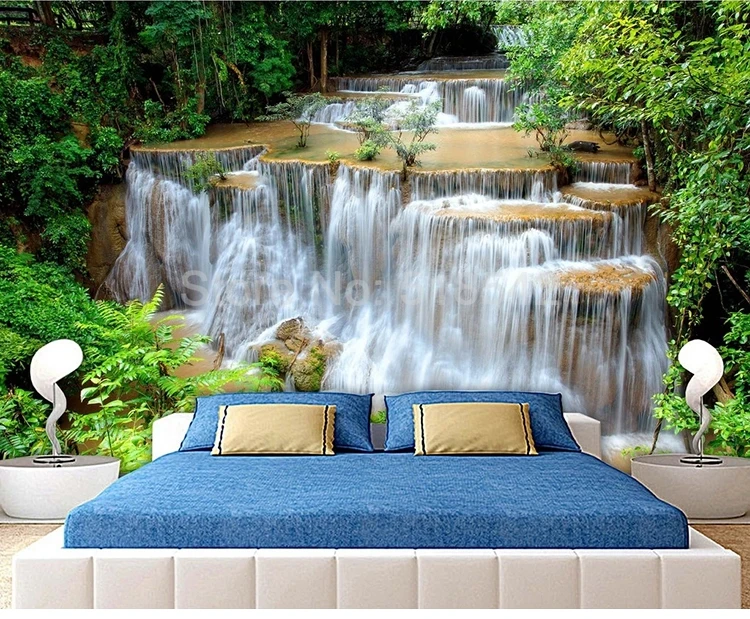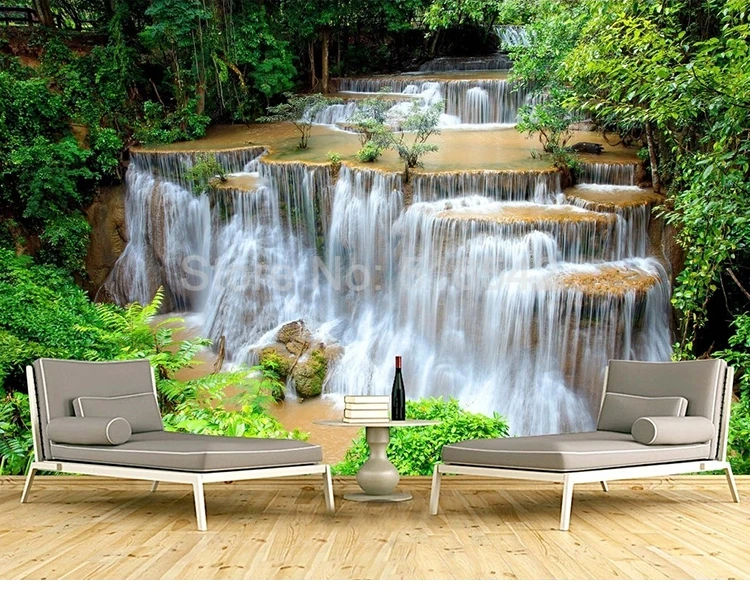 Пользовательские 3D фотообои HD Зеленый пейзаж водопад красивый ТВ фон фреска спальня гостиная нетканые 3D обои