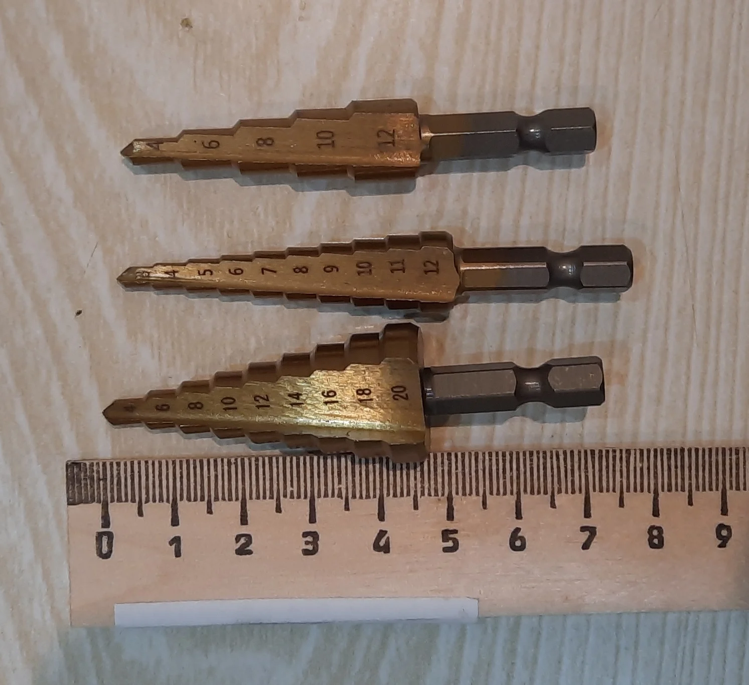Ступенчатые сверла из быстрорежущей стали с титановым покрытием, 3-12 мм, 4-12 мм, 4-20 мм