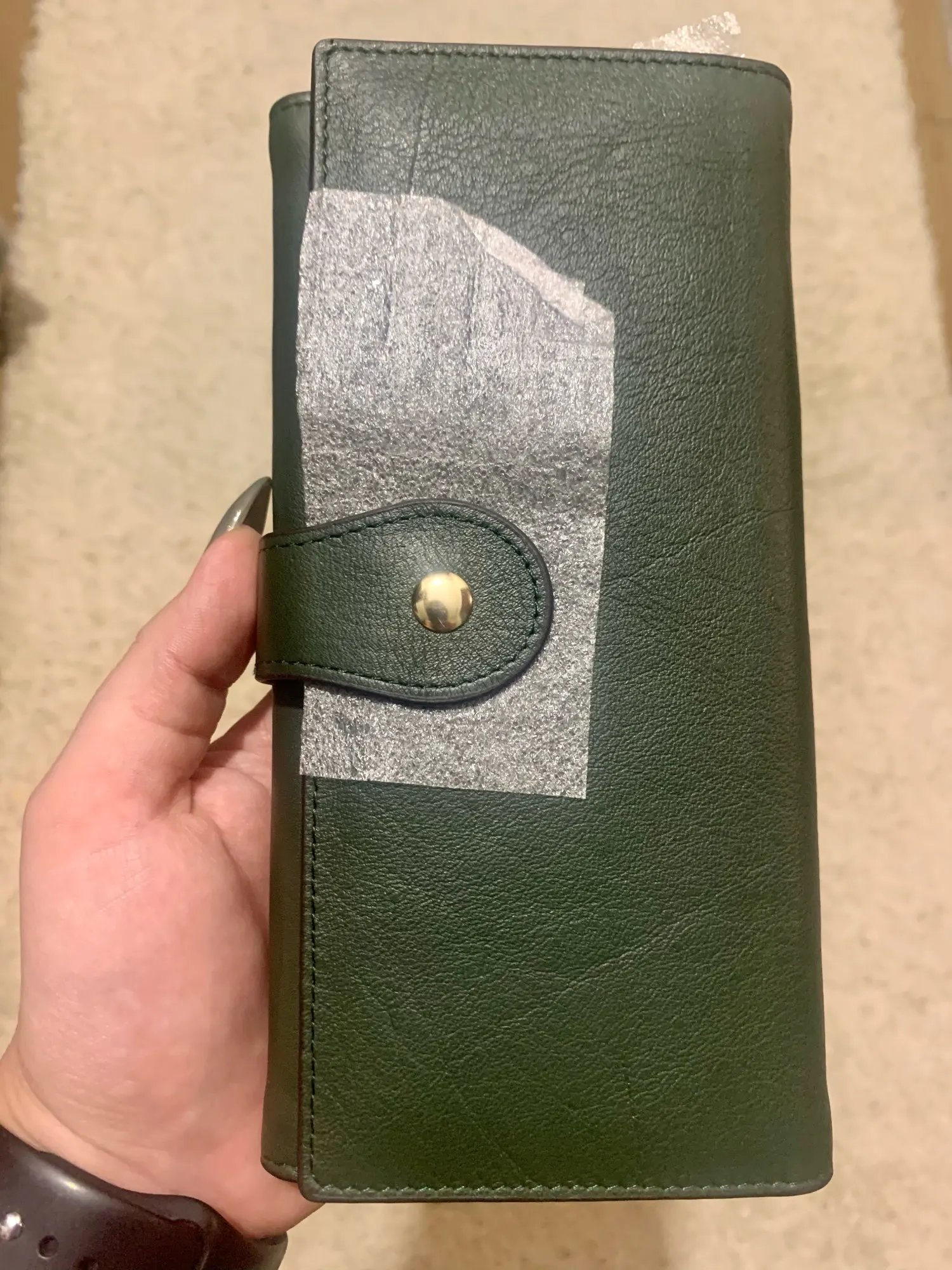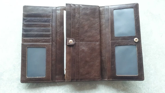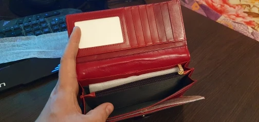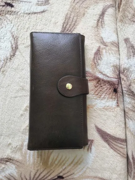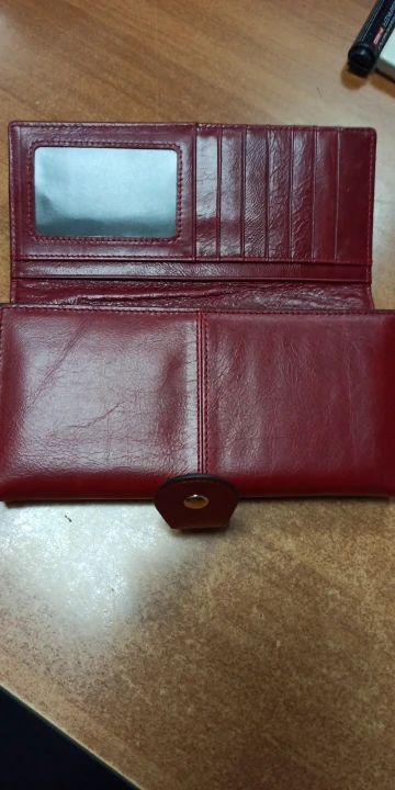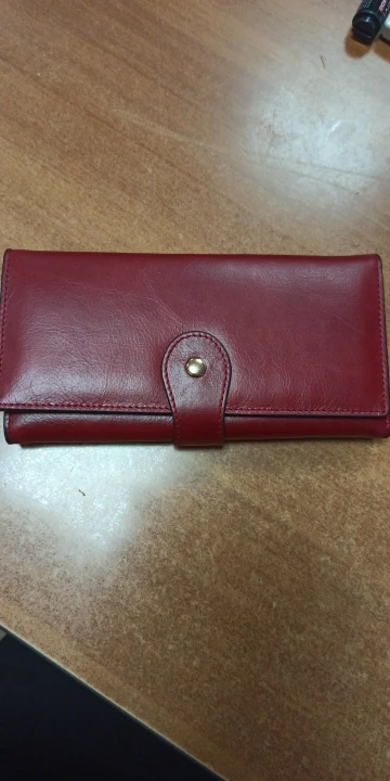 Красивый вместительный кошелёк из натуральной кожи, дошёл в Украину за 2 недели. Прекрасно упакован, ни капельки не помялся, все параметры соответствуют заявленным. Есть небольшой запах, но потихоньку выветривается. Брала в подарок маме, думаю, ей понравится :)