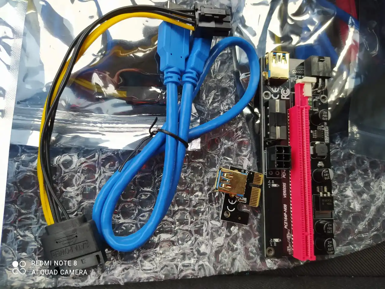 Доставили за 3 недели, упаковано отлично, ничего не повредилось. Качество райзеров на высоте, все 6 штук полностью рабочие, пайка +- хорошая, кое где есть неаккуратные каплю припоя, а так все гуд. Брать можно, питание райзера как по molex, так и по 6pin.