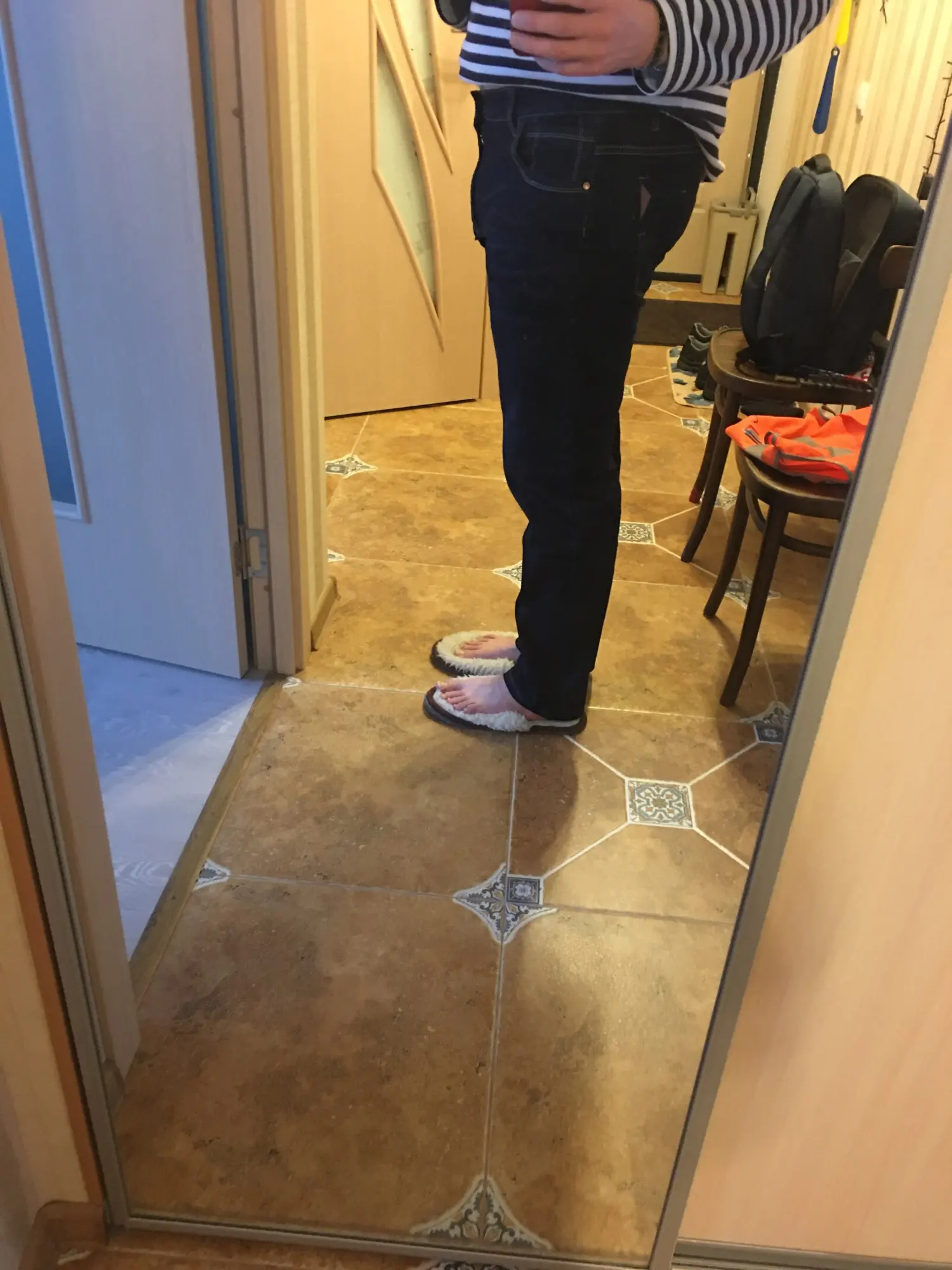 Очень хорошие тонкие, летние джинсы. Пошив качественный. Сидят хорошо. Штанины не широкие. Размер выбирали по таблице, сравнивая с размерами своих брюк, которые хорошо силдят.