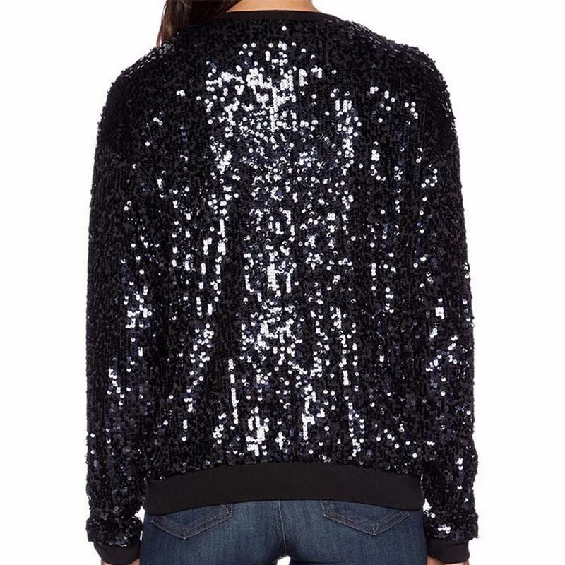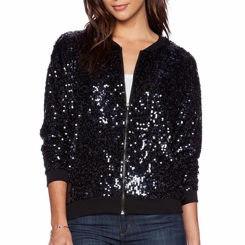 Женская бейсбольная куртка-бомбер с блестками, Черная бейсбольная куртка-Авиатор с воротником-стойкой и блестками, весна-осень 2021