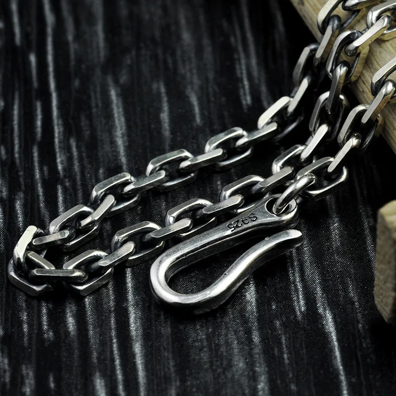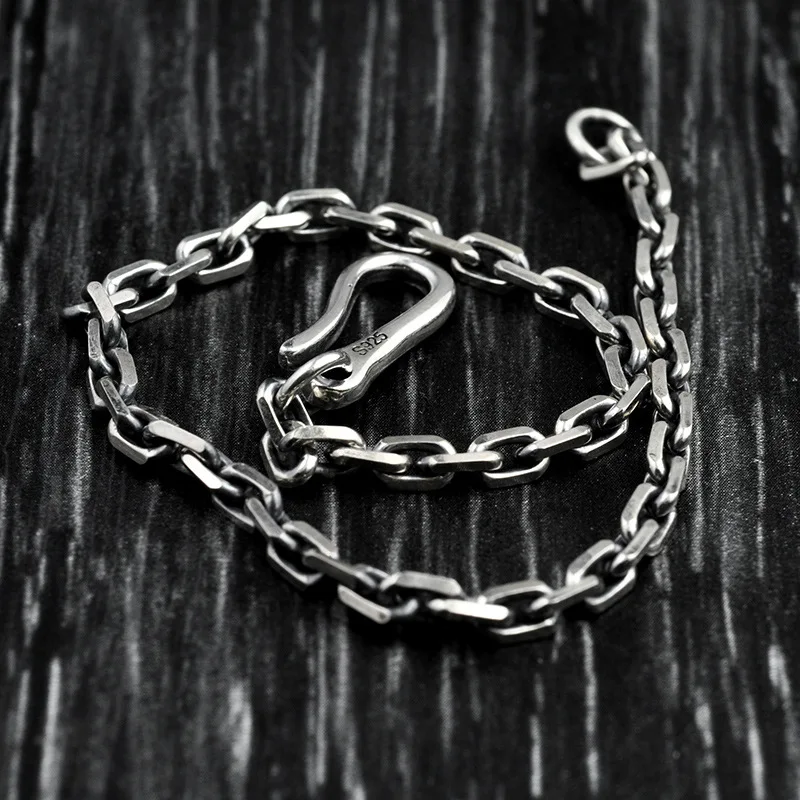 Браслеты из стерлингового серебра 925 пробы для мужчин и женщин, винтажные браслеты-цепочки в стиле панк простого дизайна с крючками Bileklik