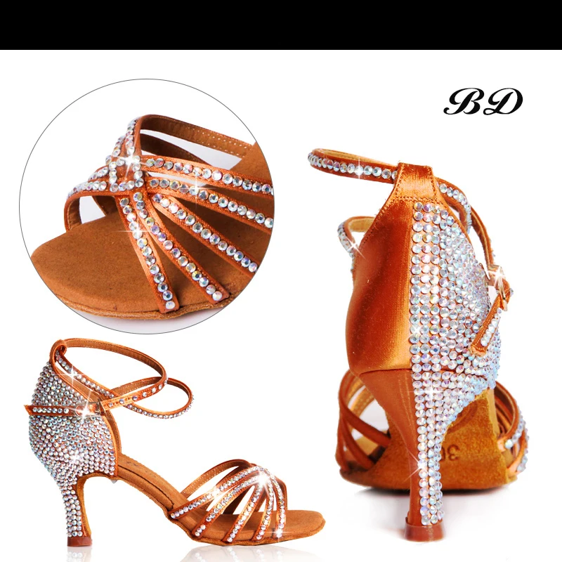 Женские туфли, стандартные танцевальные туфли, брендовая обувь для бальных танцев, латиноамериканских клубов, спортивная обувь для девочек, алмазные коричневые высококачественные танцевальные туфли со скидкой, BD217