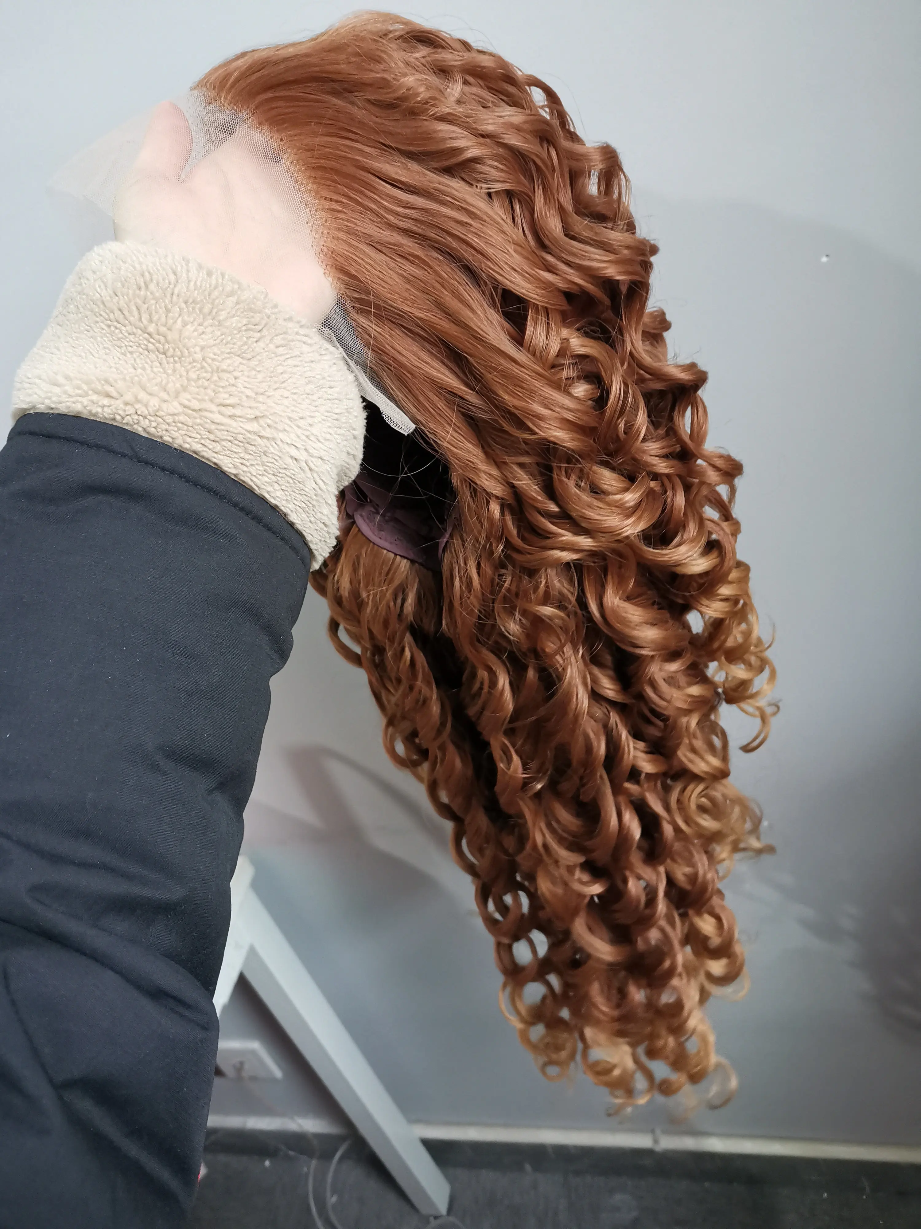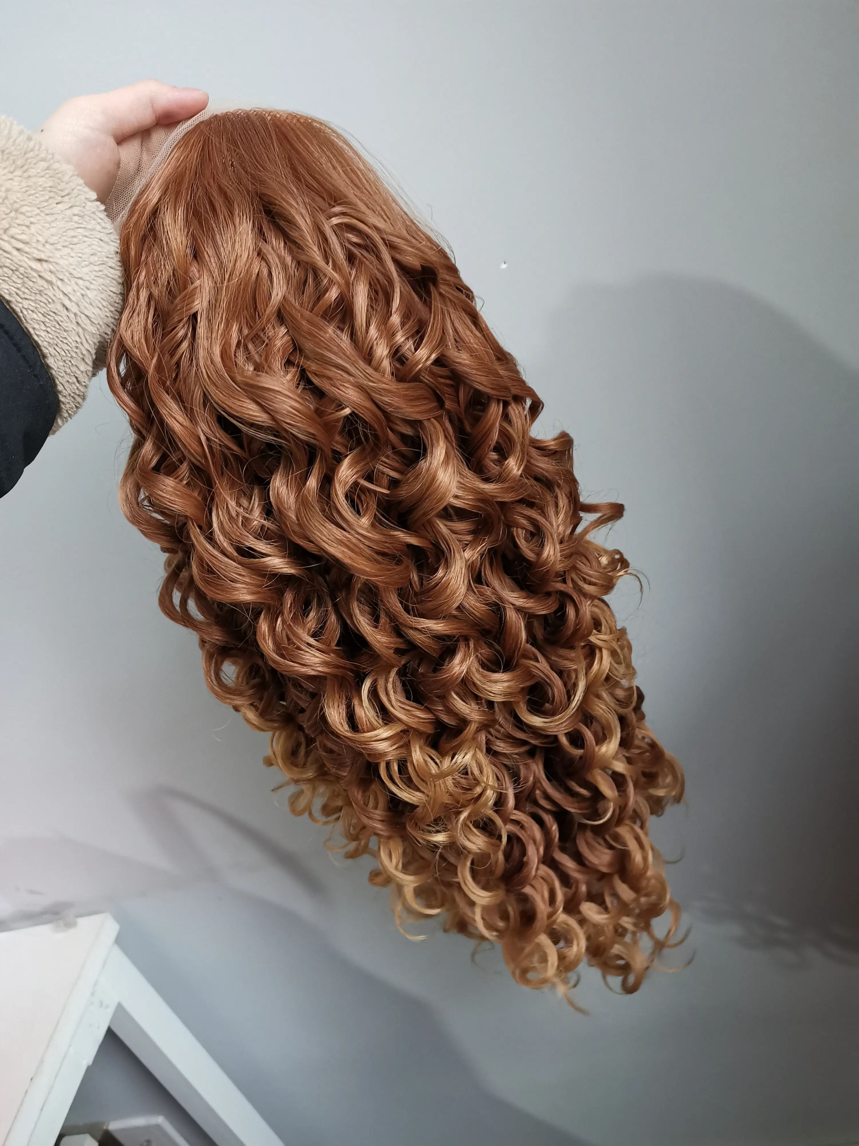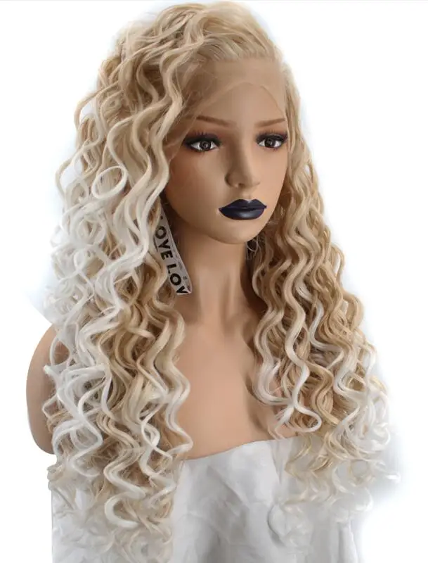 Anogol свободная часть длинный курчавый кудрявый блонд фиолетовый розовый оранжевый черный высокотемпературный волоконный синтетический кружевной передний парик для женщин