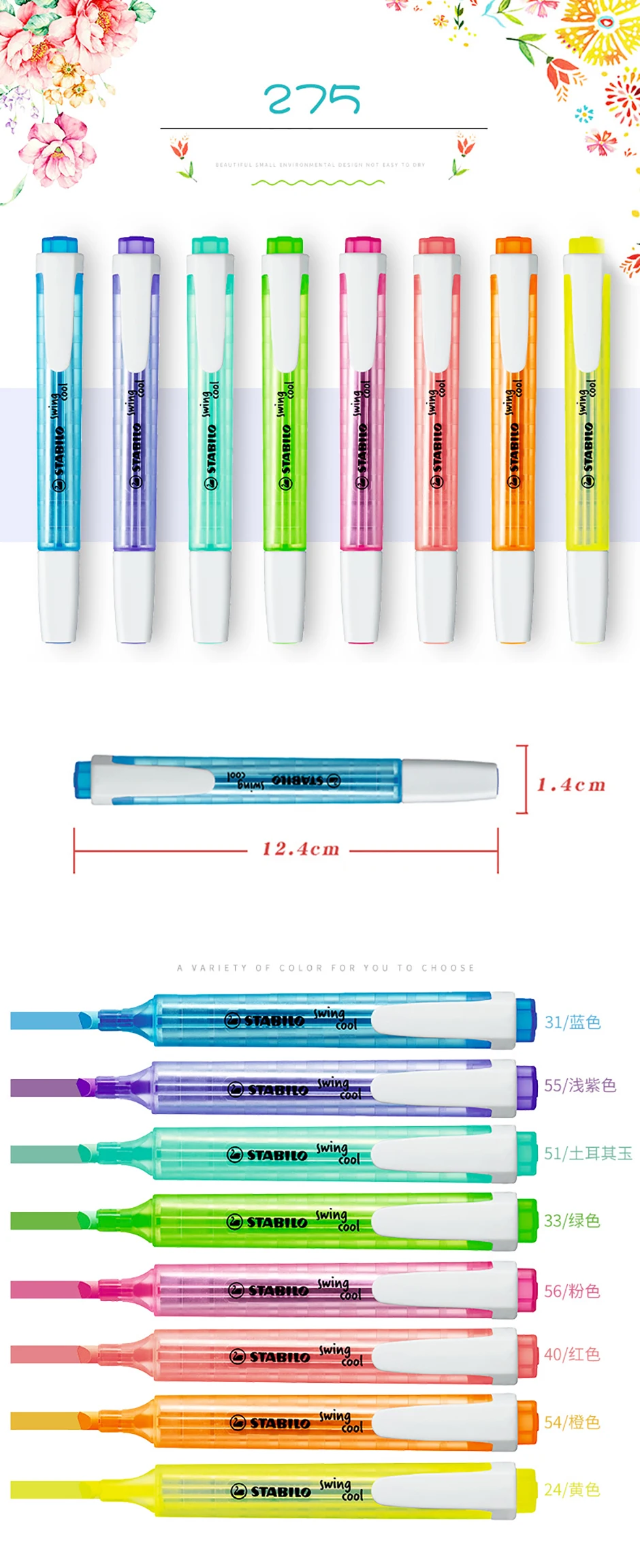 8 шт. Немецкий маркер STABILO холодного цвета маркер 275 портативный милый маркер для студентов и офиса устойчивый к высыханию