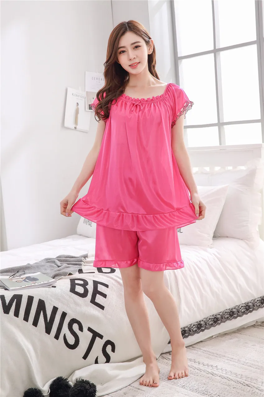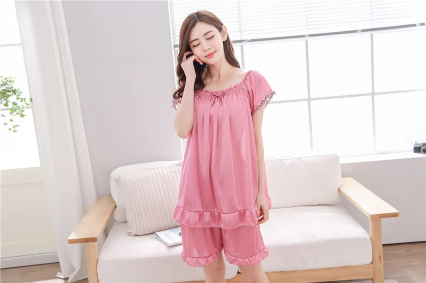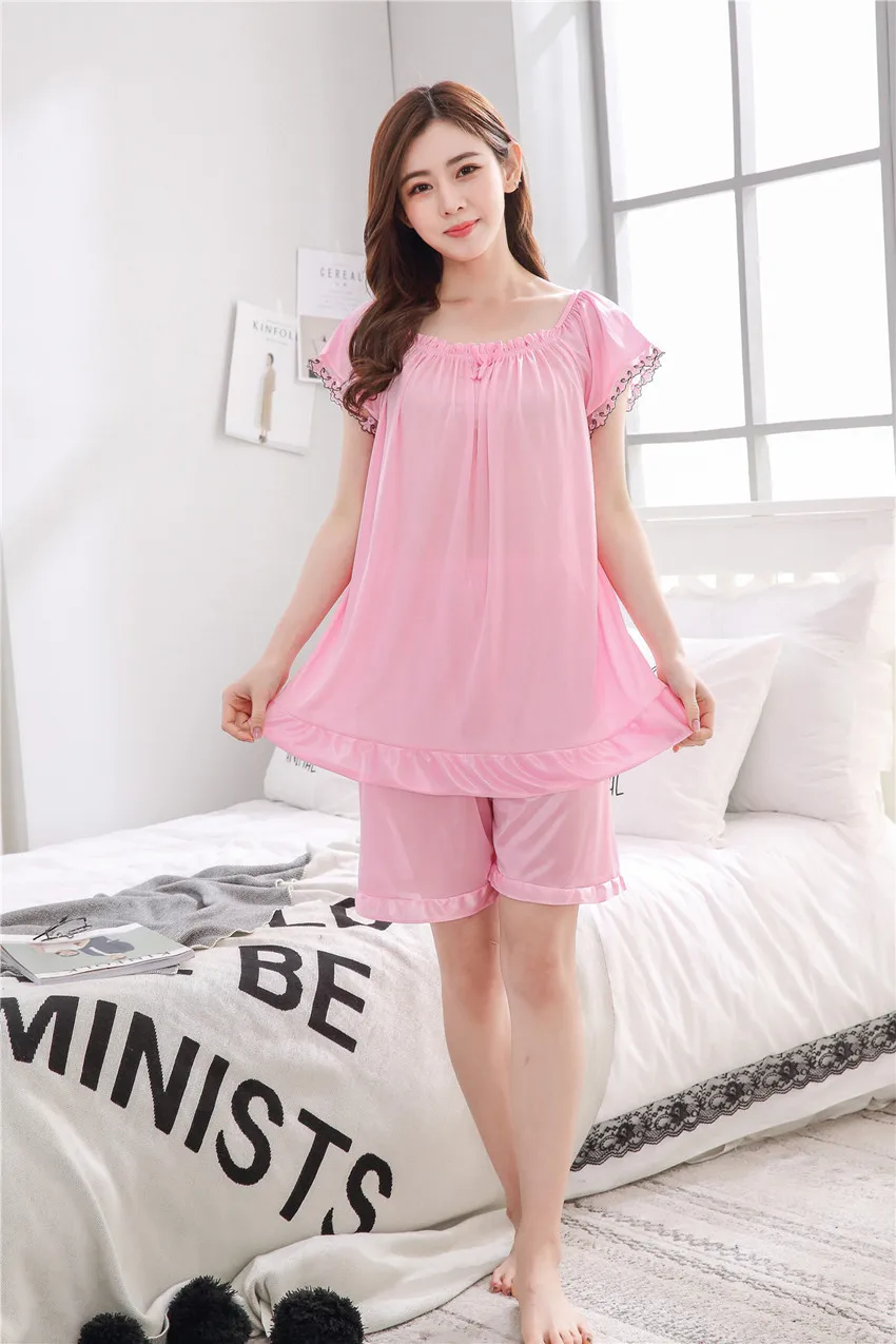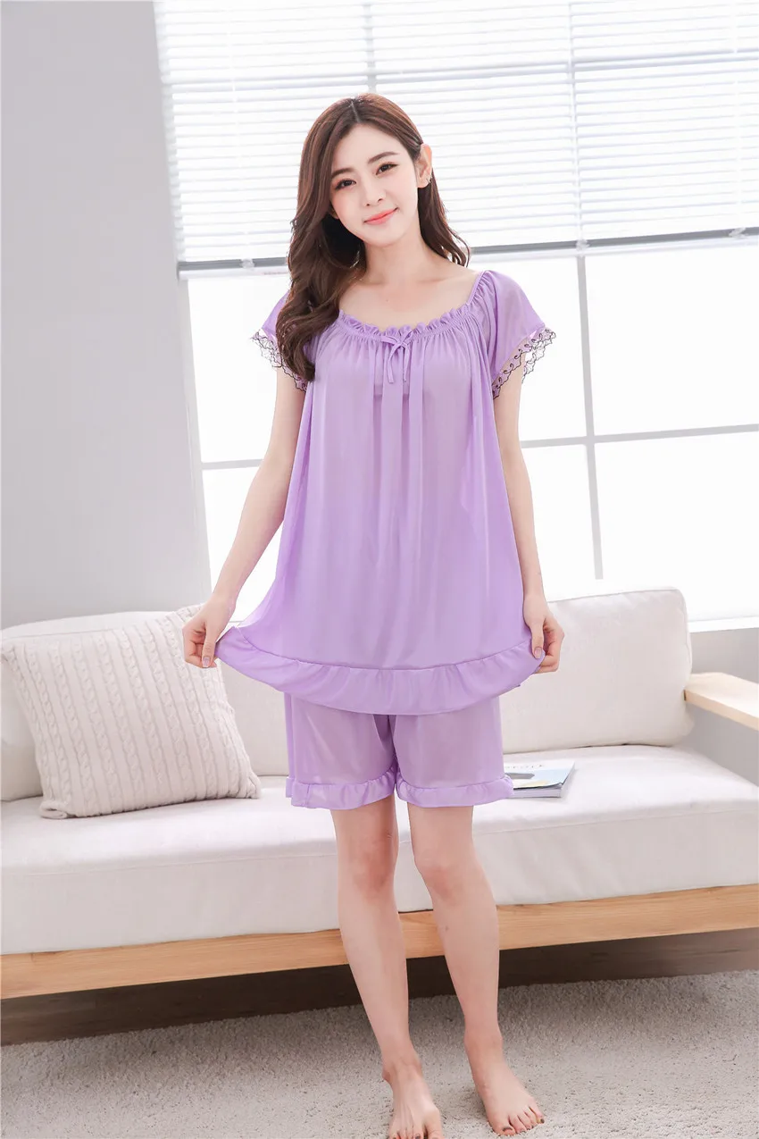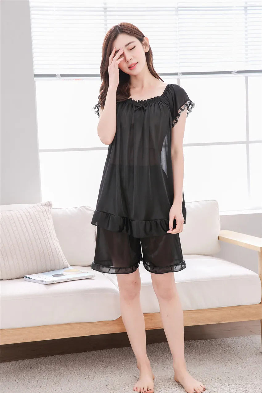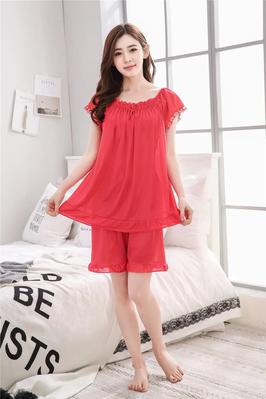 Пижамный комплект большого размера, женская летняя кружевная Пижама с коротким рукавом, однотонная пикантная Женская одежда для сна, женская пижама
