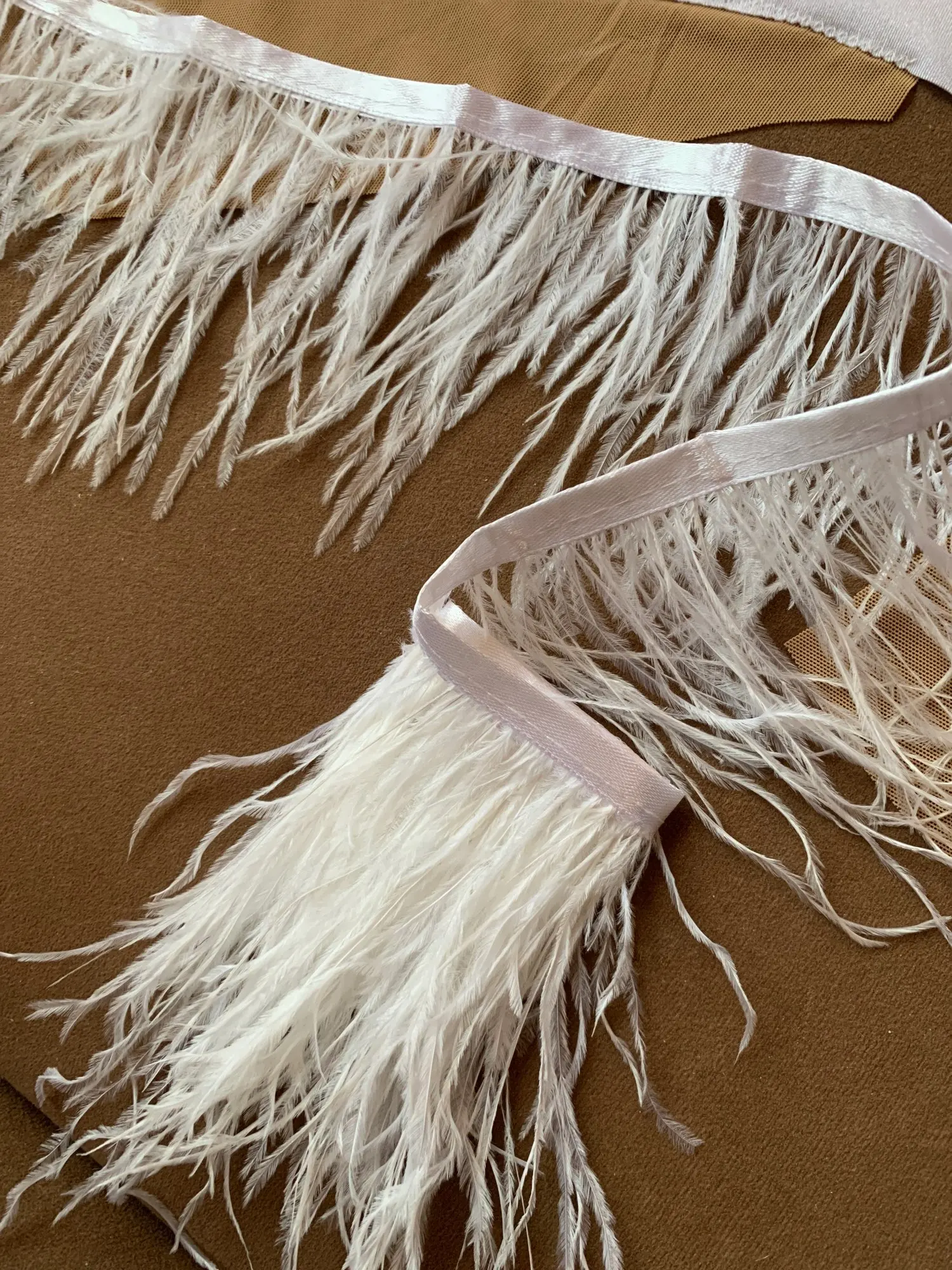 Отделка из страусиных перьев для юбки, 1 метр, 8-10 см, белые страусиные перья на ленте, перо для рукоделия, украшения для одежды