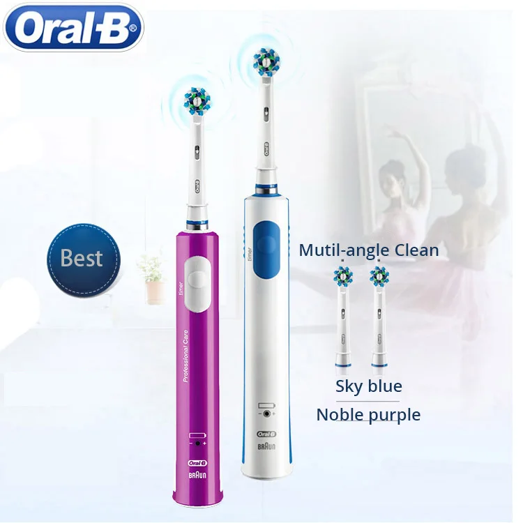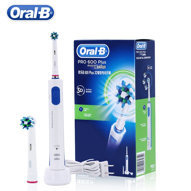 Oral B 3D PRO600 Plus электрическая зубная щетка, вращающаяся, перезаряжаемая, гигиена полости рта, белые, крестообразные, чистые зубные щетки