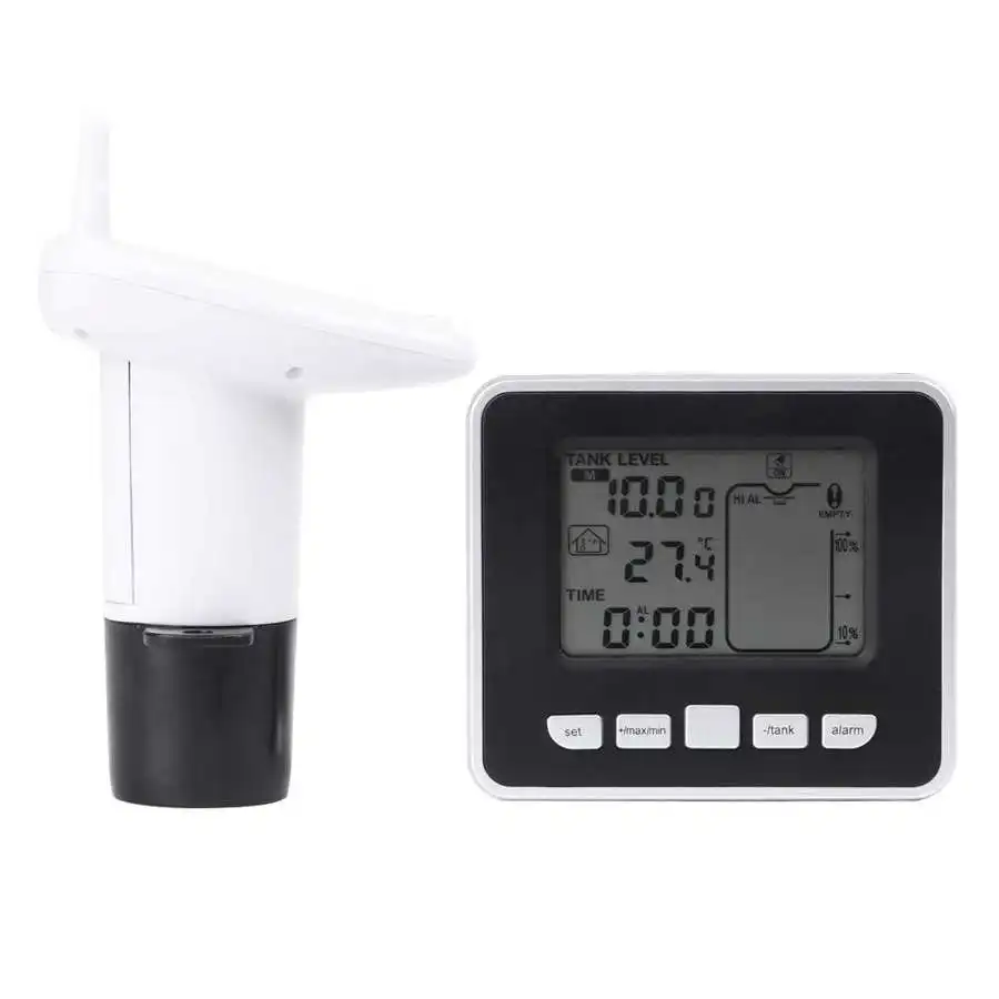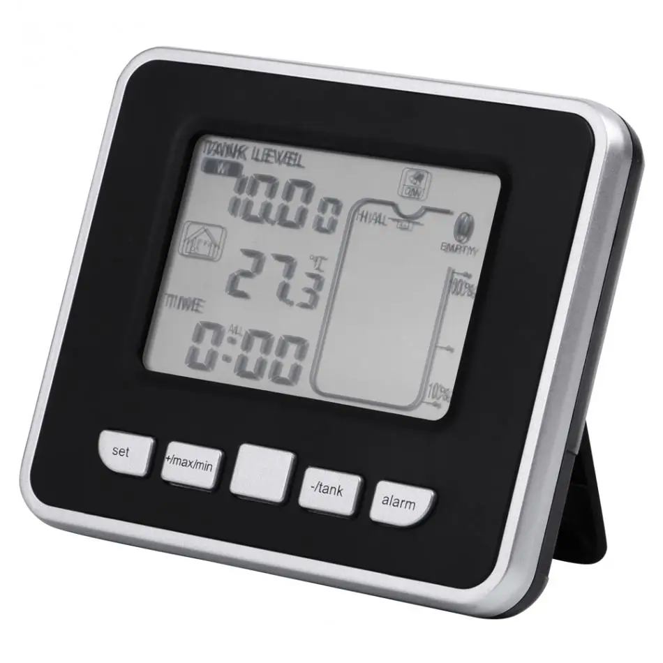 Приглядывайте за уличным резервуаром для воды с комфорта в собственной гостиной на расстоянии до 100 м. Установленный в верхней части резервуара для воды, передатчик измеряет уровень воды с помощью ультразвукового датчика и температуры с помощью термодатчика. Вы можете повесить приемник на стену или вытащить подставку и поместить ее на кухонную столешницу, стол или стол. Просматривайте температуру, температуру бака и уровень воды в вашей комнате (отображается на 10-элементной гистограмме). Вы можете хранить записи мин/Макс и устанавливать сигналы тревоги для определенного уровня воды (Высокий/Низкий) или когда нет.