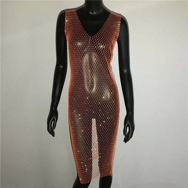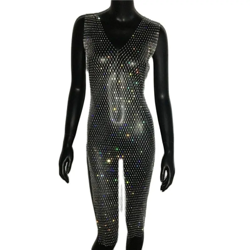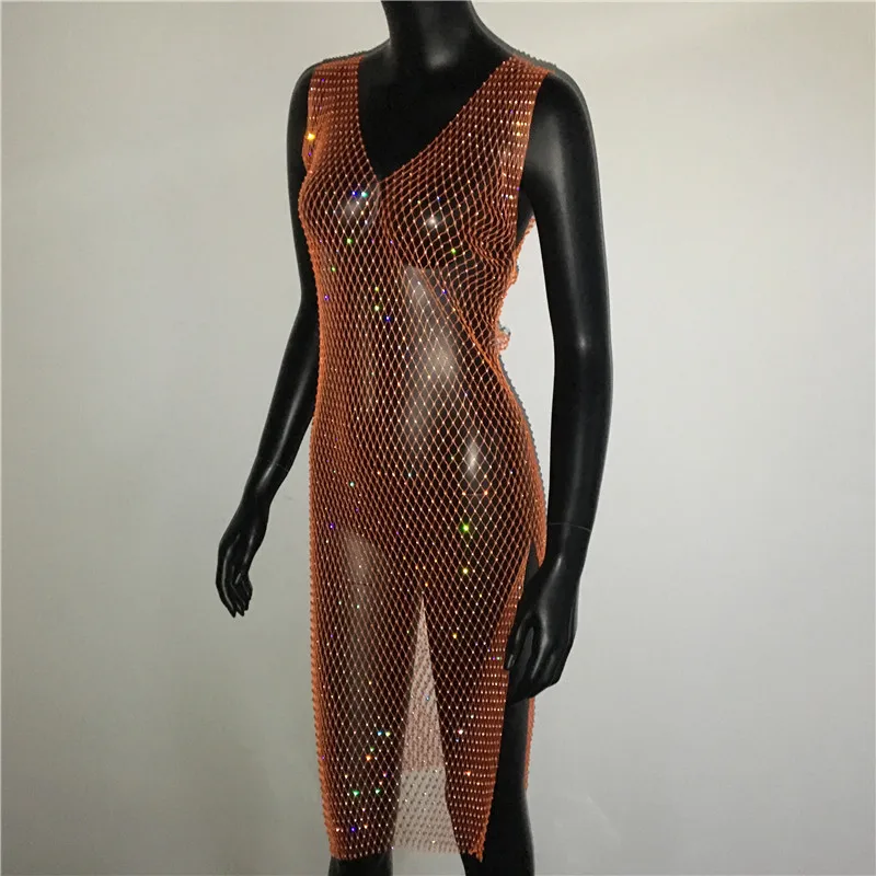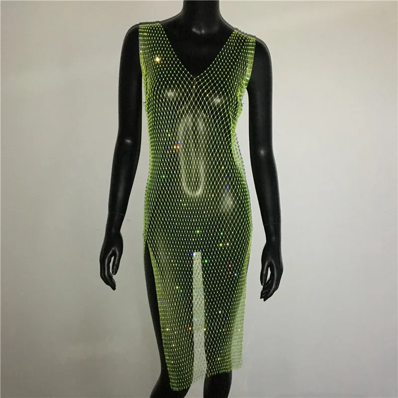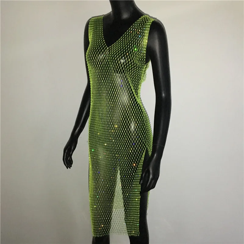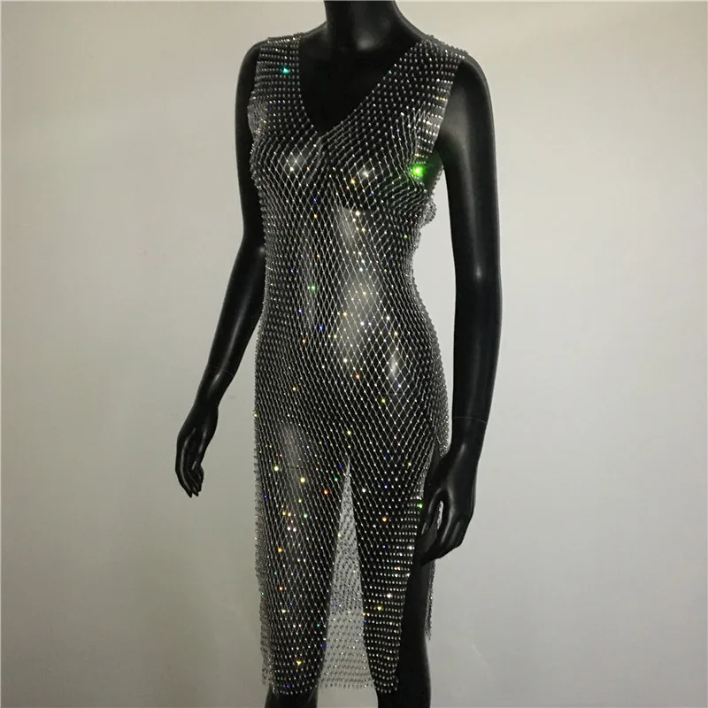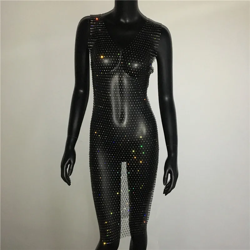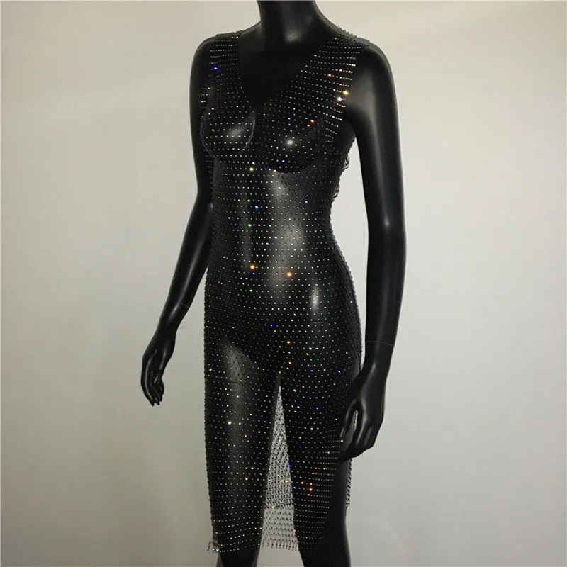 2022 черное Сетчатое вечернее платье стразы с блестками и кристаллами, женская сексуальная облегающая Верхняя одежда без рукавов, пляжные платья для ночного клуба