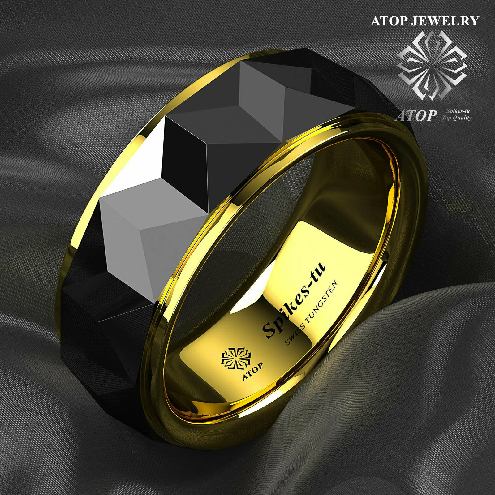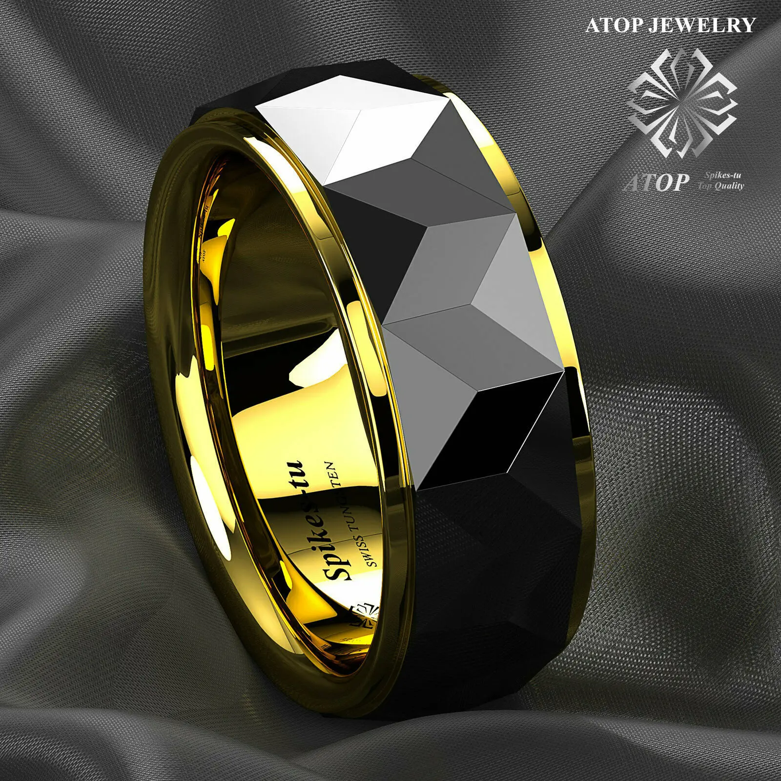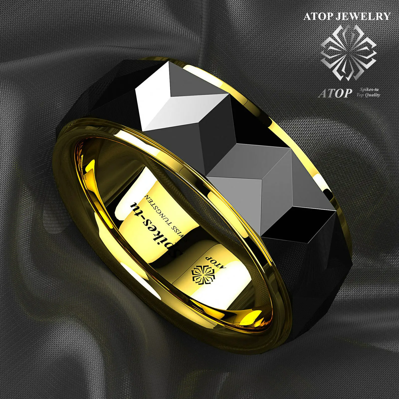 8 черных ромбов полированное сверху вольфрамовое кольцо 18 К золото обручальное кольцо мужские ювелирные изделия