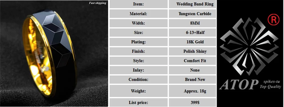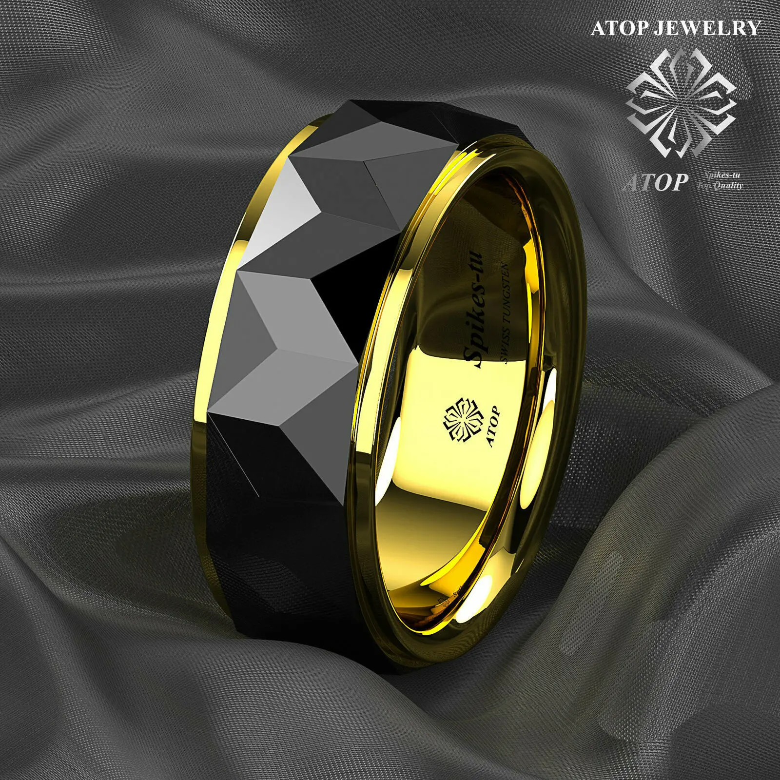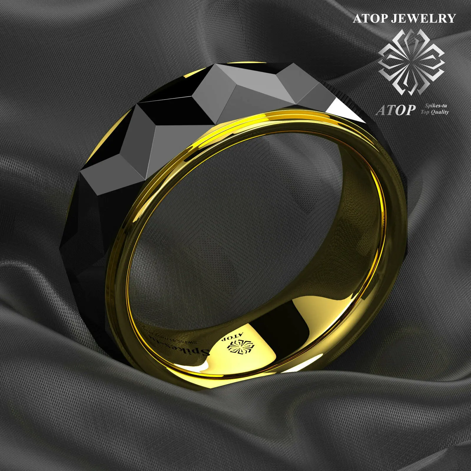 8 черных ромбов полированное сверху вольфрамовое кольцо 18 К золото обручальное кольцо мужские ювелирные изделия