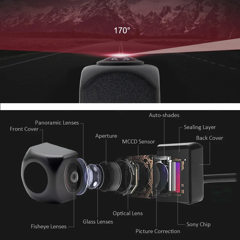 * Датчик изображения Sony/MCCD 3089. Камера Pixel 720P.* Поддержка видео системы NTSC/PAL. Высокая степень водонепроницаемости: IP68.* Высокое разрешение и угол обзора 170 градусов. Как рыбий глаз.* Низкий светильник ночного видения, видимое расстояние 6 м для ночи.* 6 м RCA видео разъем. Подходит для dvd-плеера Android и любого автомобильного монитора TFT.* Зеленый провод-это ссылка на парковку для включения/выключения. Эта камера может удалить парковочные линии.* Видео ссылки: https://youtu.be/GlxkTPMMcjg