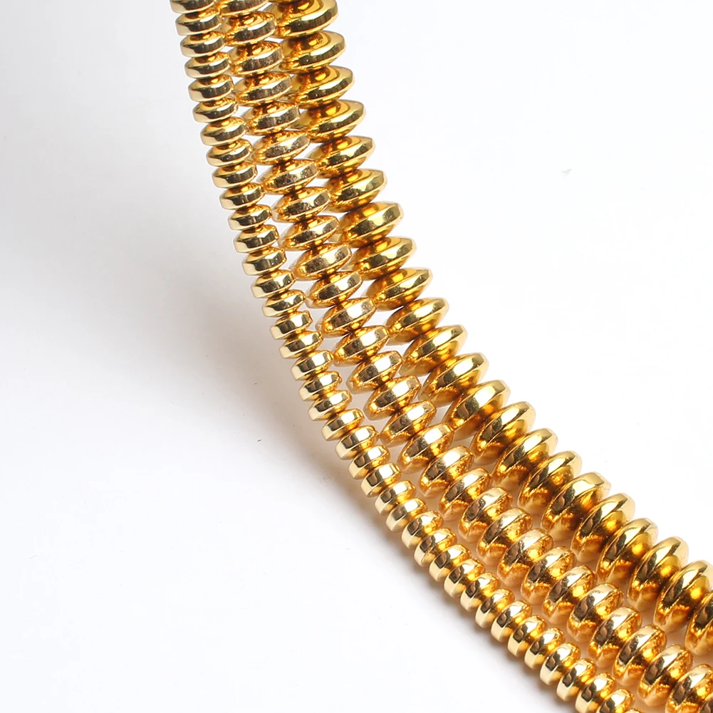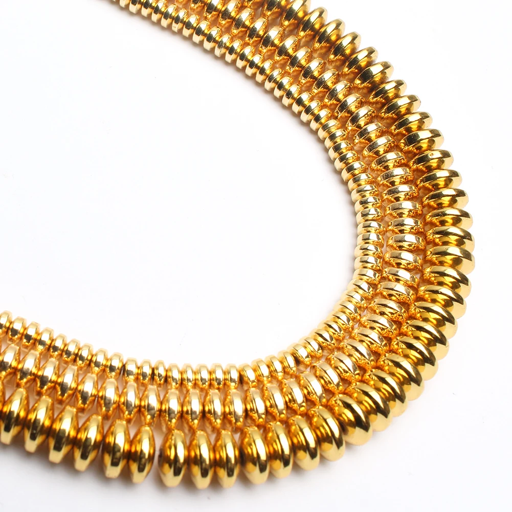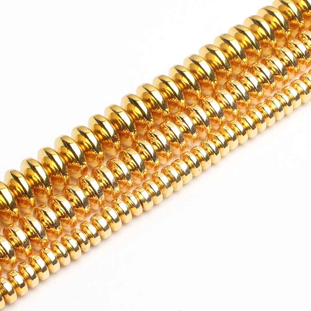 18K золото Rondell гематит бусины натуральный камень бусины для изготовления ювелирных изделий 180 шт./лот разделительные бусины Diy ювелирные изделия 4 мм 6 мм 8 ммДлина:15,5 дюйма/нитка