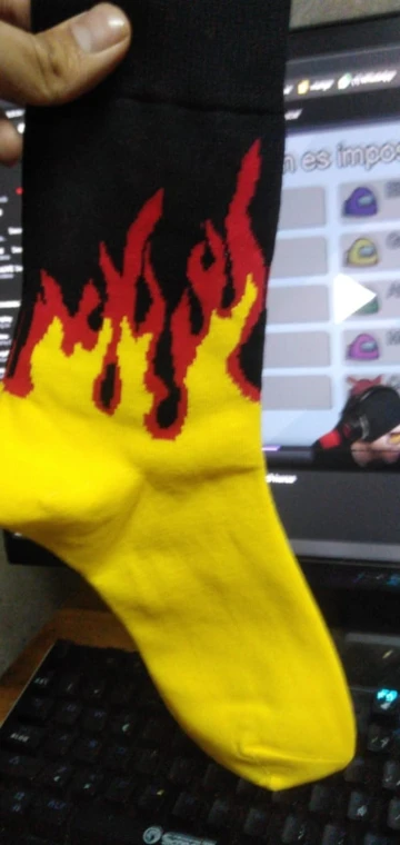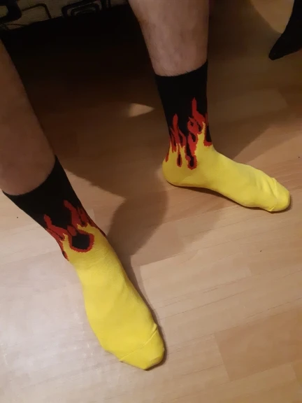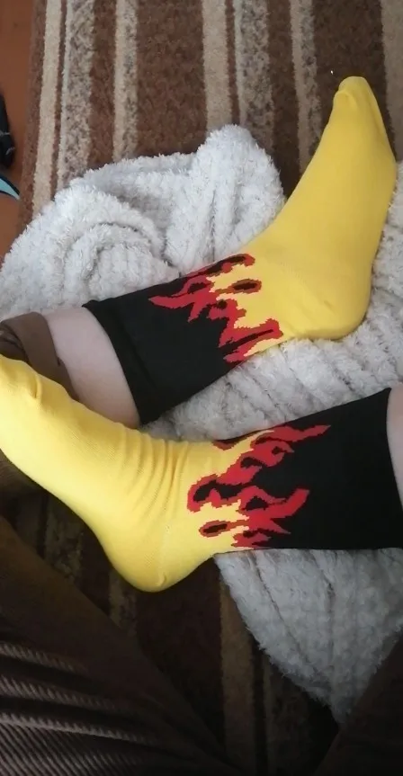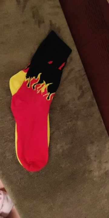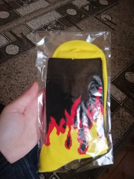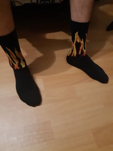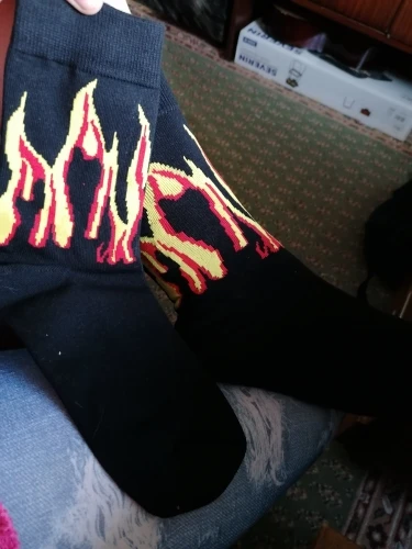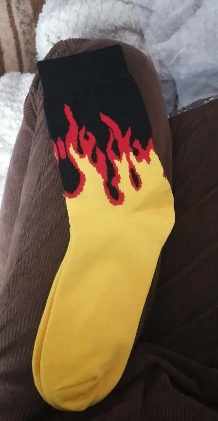 Офигенный носки,огонь конечно не так красочно выглядит, как на фото,но все равно круто! носки кстати довольно толстые и тёплые. для зимы самое то. В следующий раз ещё закажу пару