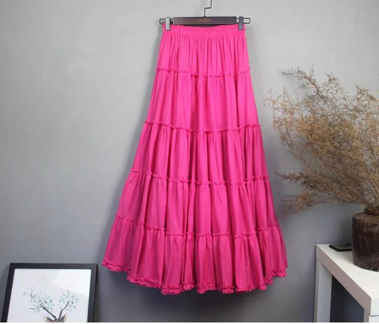 Женская длинная юбка в Корейском стиле, летняя однотонная хлопковая юбка в форме зонтика с оборками, пляжные Повседневные вязаные юбки
