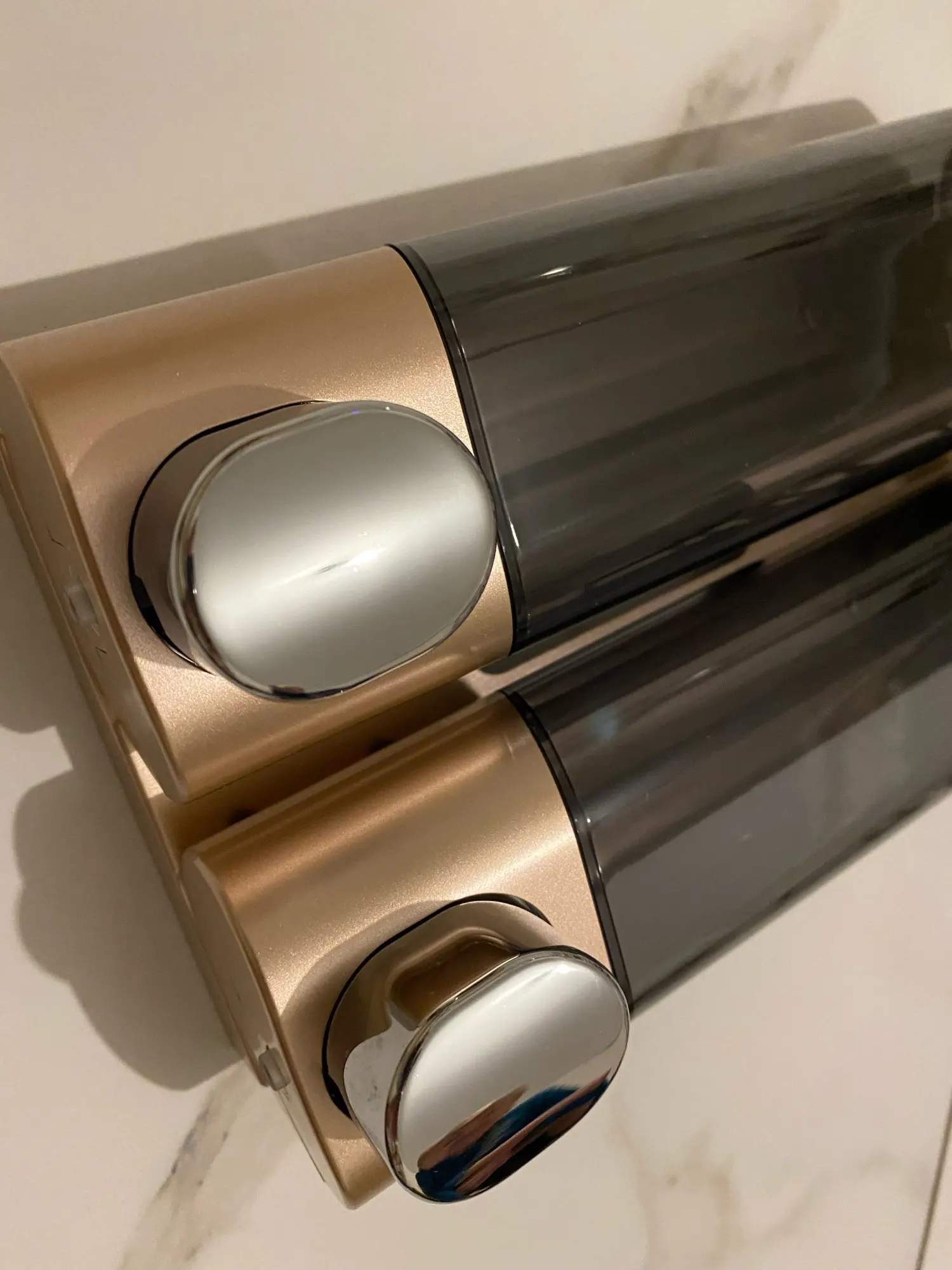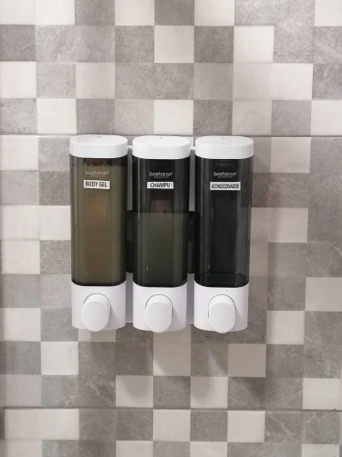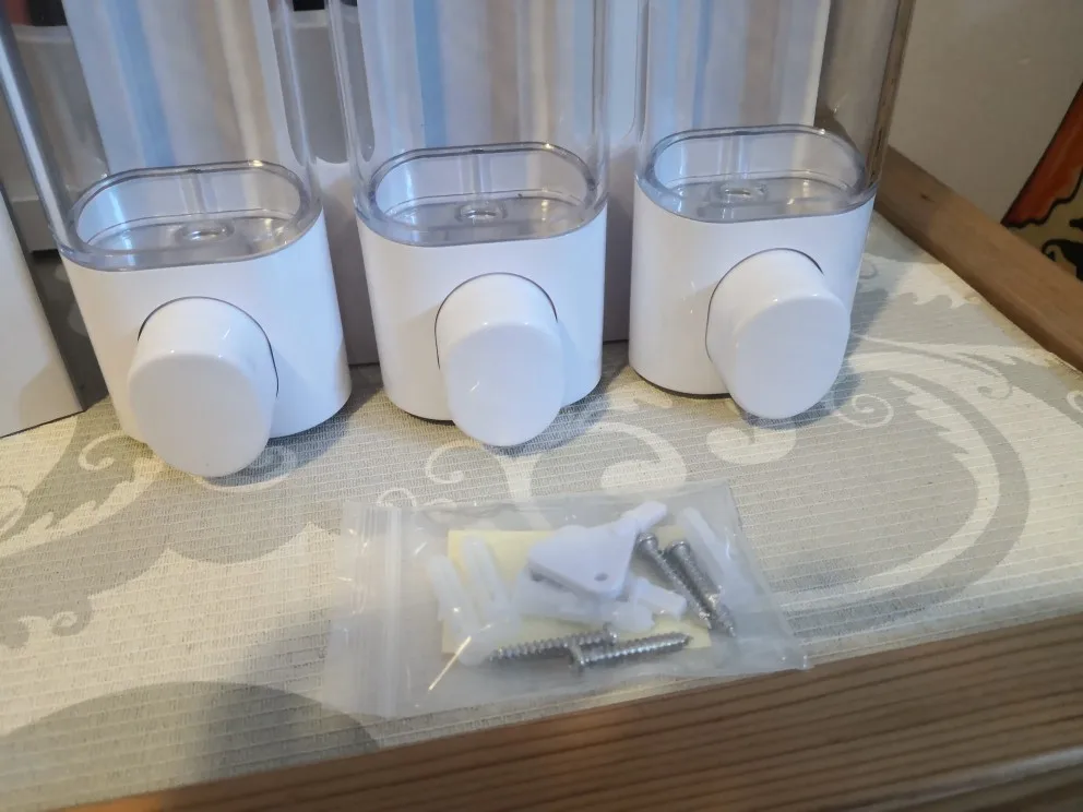 Хороший диспенсер, выдает небольшую порцию шампуня. Пластик качественный, собрано без люфтов. В комплекте шурупы, но не хотелось сверлить стенку и удалось приклеить на полимерный клей для потолочных плиток через мягкую тонкую прокладку. Имеются ключики для крышечек, но закрывать на ключ - ни к чему и не зачем. Работают четко, пользоваться удобно. Свое предназначение исполняют как положено. Плюс привлекательный классический внешний вид.