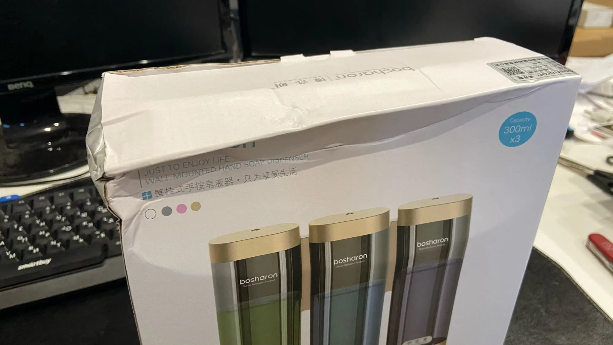 Посылка в Минск пришла чуть меньше, чем за месяц. Товар хорошо упакован, все целое. Сделан качественно, крепкий. В комплекте дюбеля и шурупы, но мы стену не сверлили, приклеили на двусторонний скотч. Мыло хорошо дозируется, не большими порциями. Не течёт. Товар и продавца рекомендую!