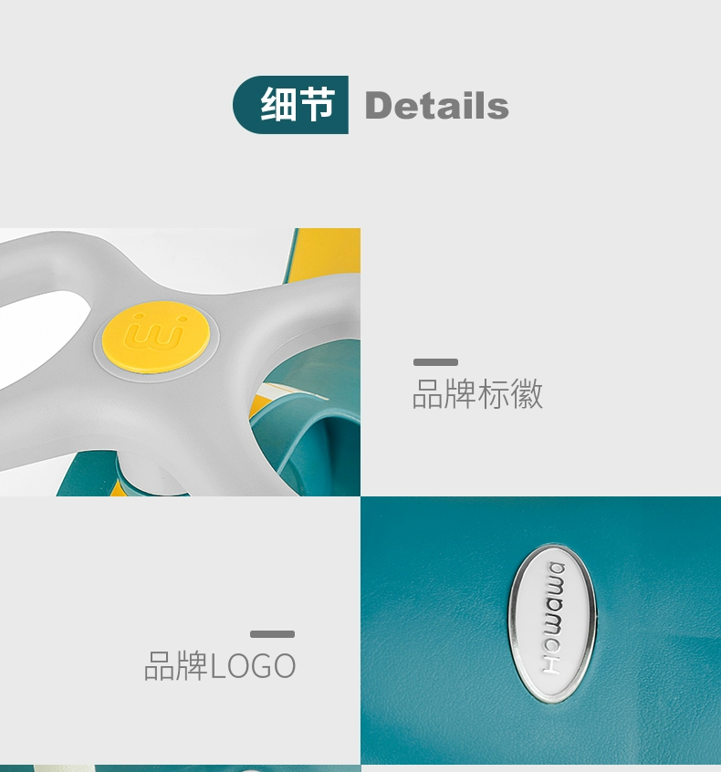 3. Руль "8", удобный захват, ультраширокое сиденье, высокий фактор безопасности, гладкая кромка, более безопасный для детей.