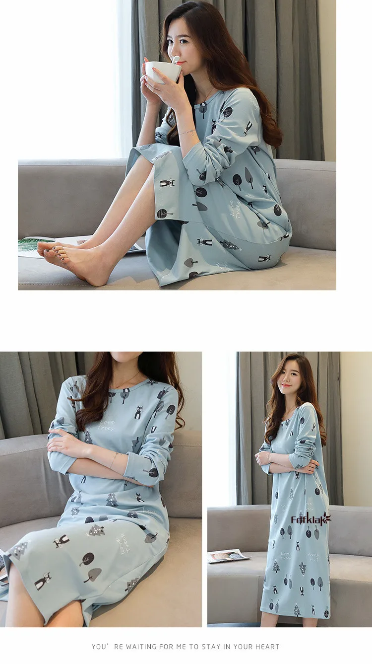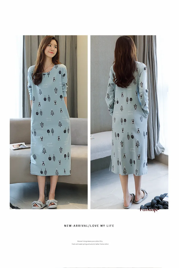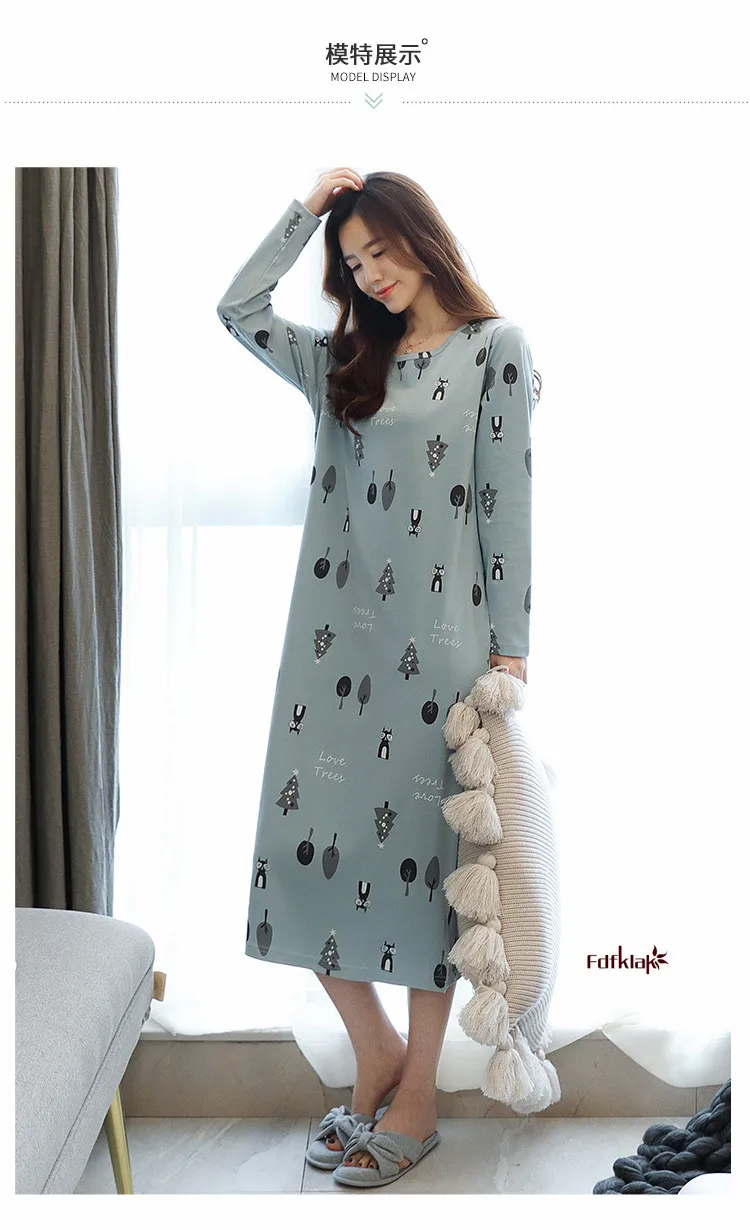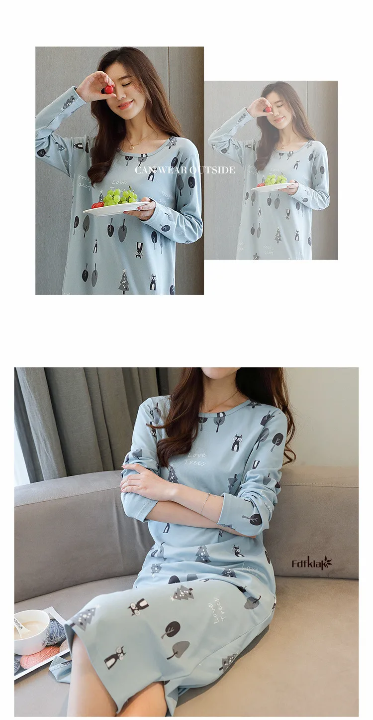 Ночная рубашка Fdfklak, из размера плюс хлопка, женская, весна-осень, ночная рубашка с длинным рукавом, M-3XL