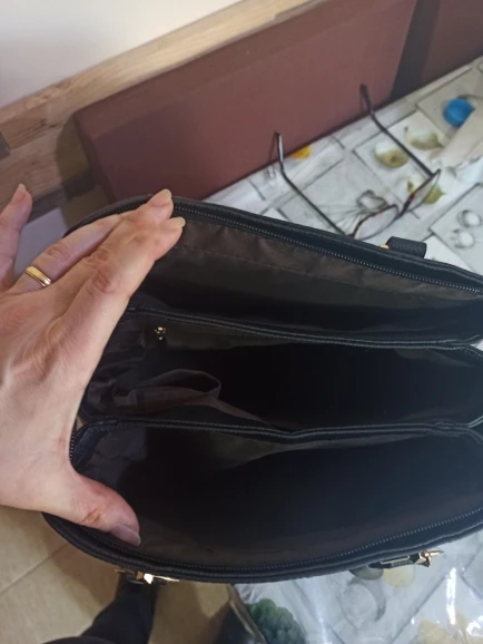 Сумка очень понравилась.Аккуратная всё как описано. Смотриться хорошо. Три отдела. Правда внутри материал как будто бумага вся шуршит но это не принципиально. Замки все работают. без заломов вся ровная внутрь положили надутый пакет. Пришла быстро. Продавец положил маленький подарочек. Приятно. Цена тоже хорошая. Так что заказывайте не пожалеете. С продавцом не общалась не было причины. Понравилось всё и быстрая отправка и доставка и сама сумка. Рекомендую.
