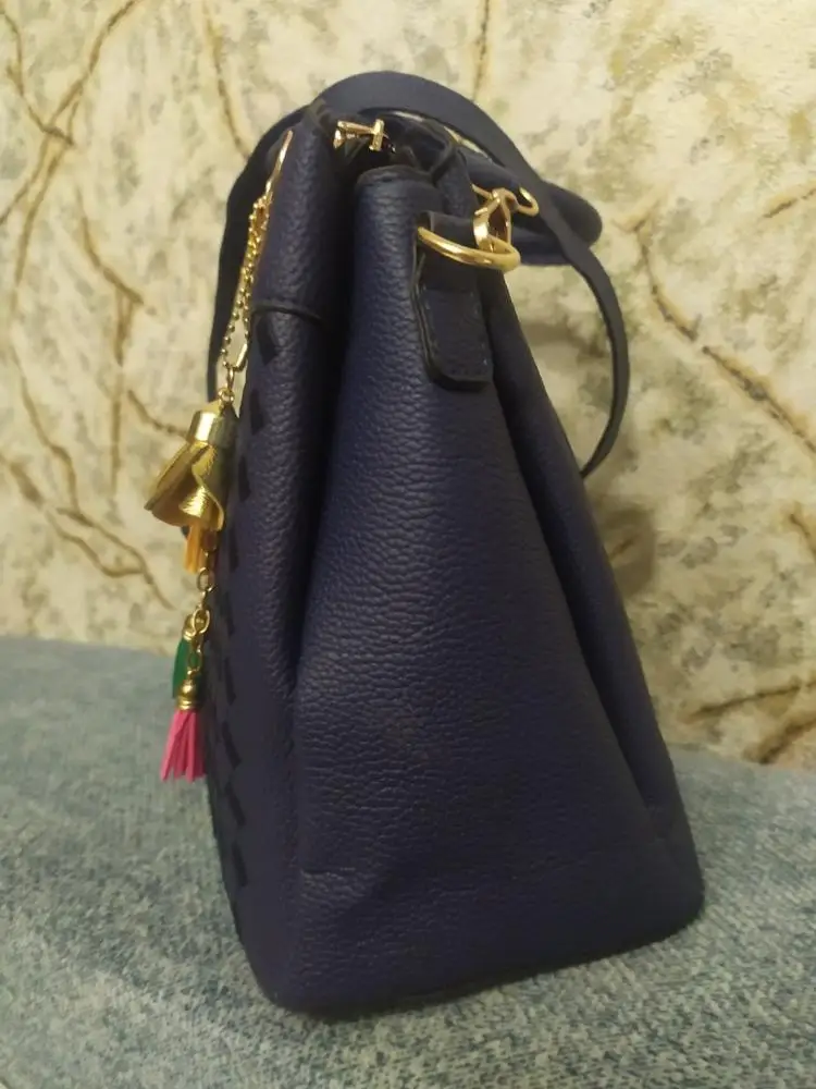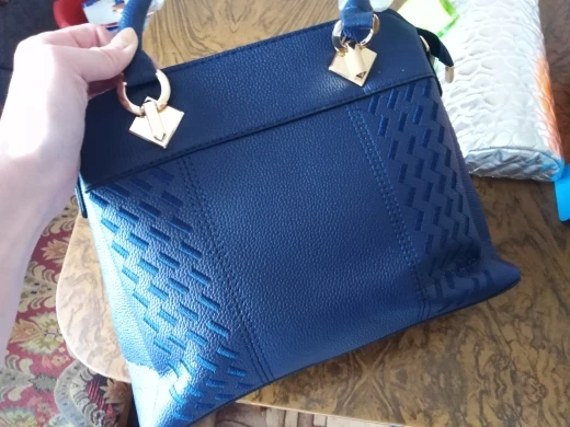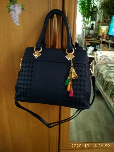 Сумка красивая, из искусственной кожи, полностью соответствует описанию. Цвет тёмносиний, красивый, более точный на фото у меня в руке. Выслали с пакетом внутри, но всё же появился залом на нижней части, хотя это не критично. Доставка в Алтайский край очень быстрая, оплата была 12 ноября, а получила 23 ноября. Большое спасибо продавцу за сумку!!!