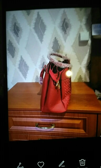 Сумка такая, как на картинке. Дошла довольно быстро. Не помялась - внутри пластиковый пузырь. Съемный ремешок также находился внутри. В подарок продавец положил резиночку для волос. За такую цену очень даже хорошая женская сумка. Всем рекомендую! Спасибо продавцу!