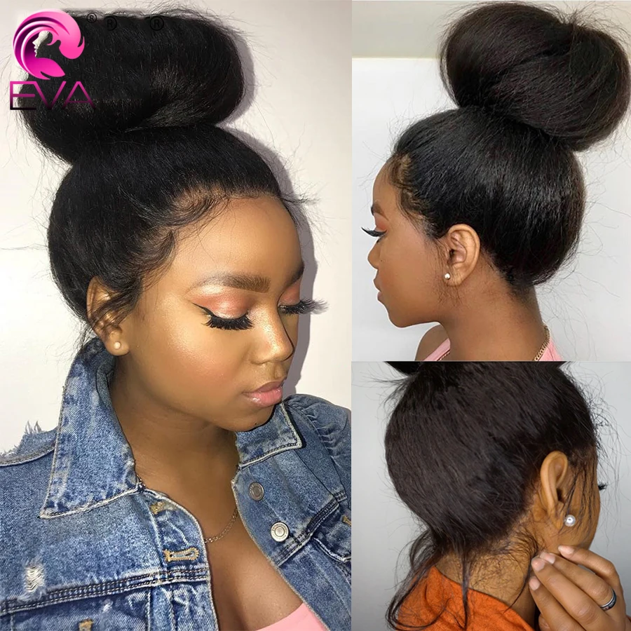 ЕВА предварительно выщипанные человеческие волосы на шнуровке, искусственные волосы, прямой парик на шнуровке спереди, бразильские парики на шнуровке 4x4 Для Женщин