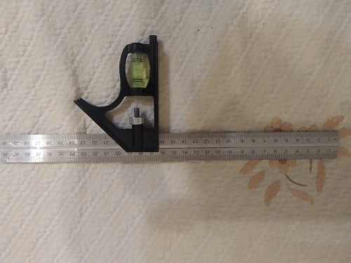 Продукт крайне низкого качества: линейка тонкая, болтается в прорези рукоятки, резьба на фиксаторе сорвана, гайка на фиксаторе болтается. Не тратьте деньги на это ...... .
