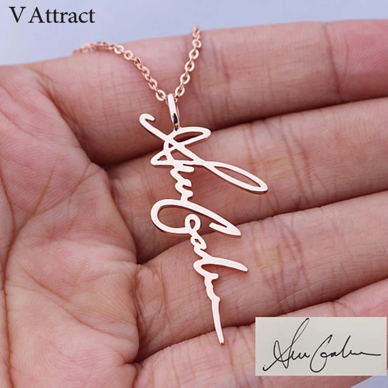 V-образное Рукописное впечатление ювелирные изделия подвеска с подписью под заказ женское вертикальное персонализированное ожерелье с именем для женщин подарок
