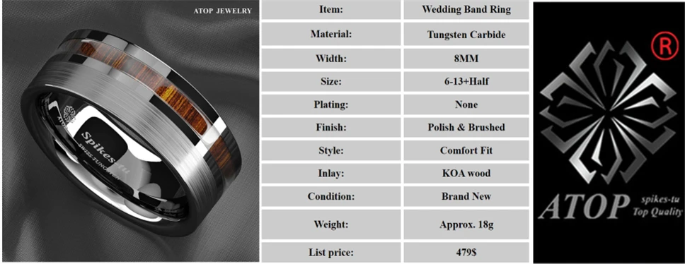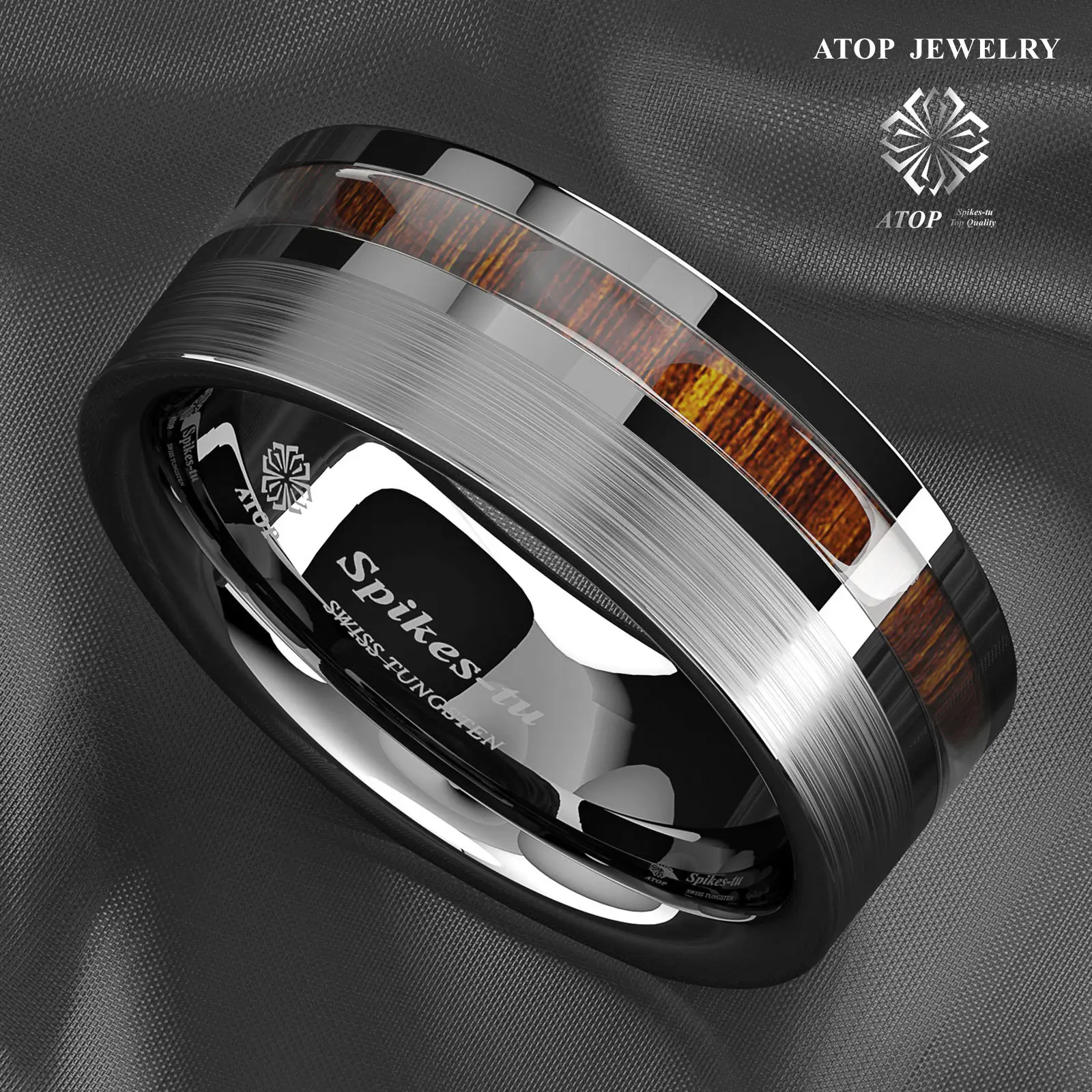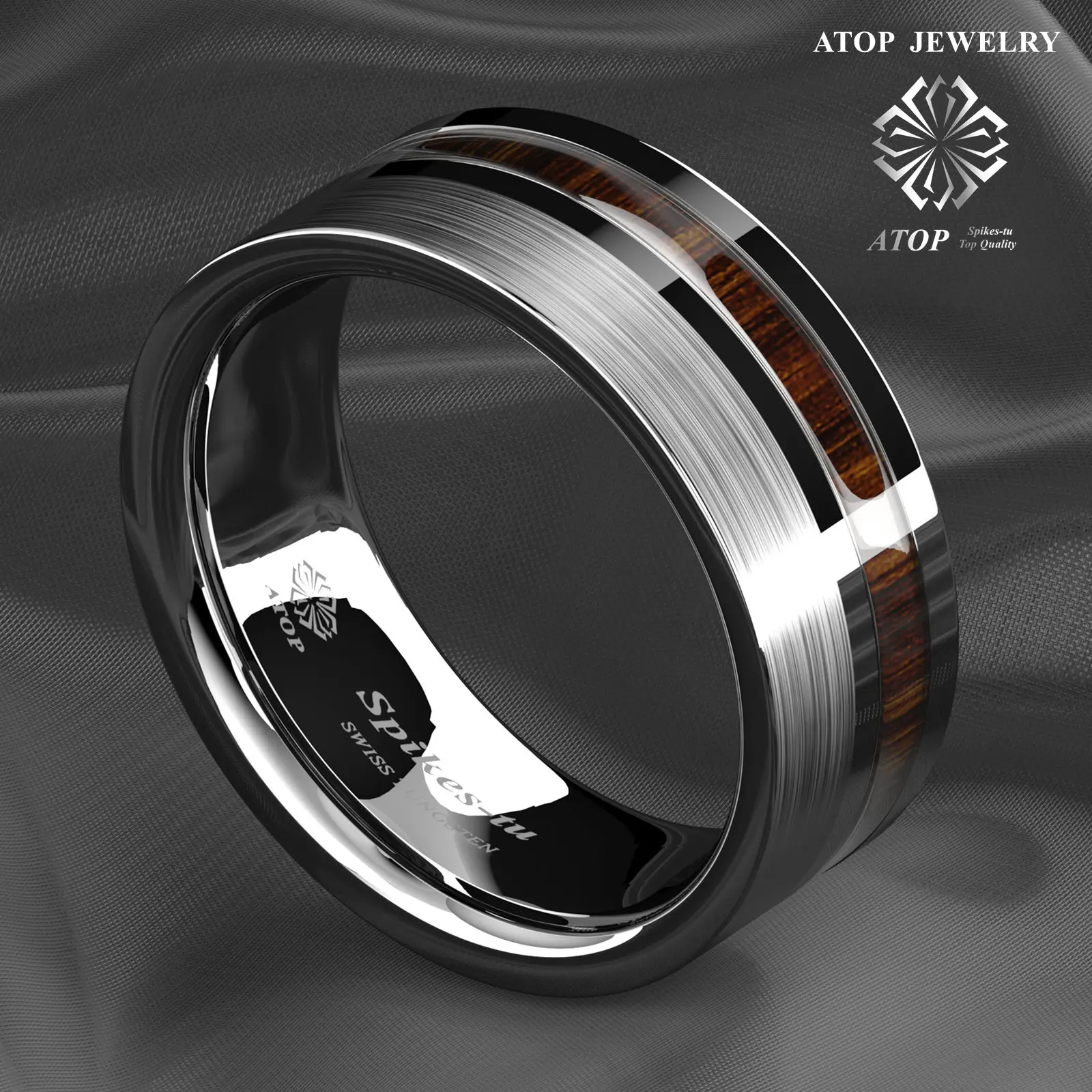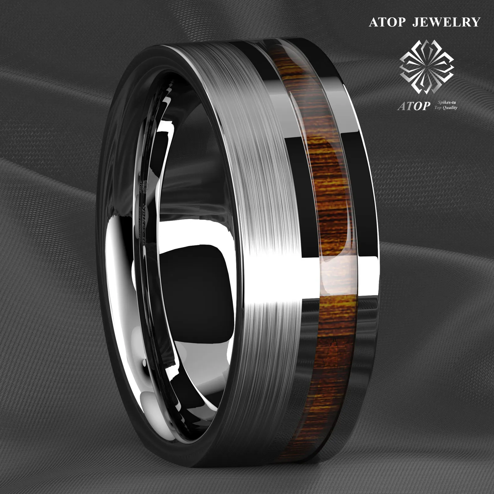 8 мм черный Вольфрам кольцо из карбида КоА деревянный ушка на обруч...