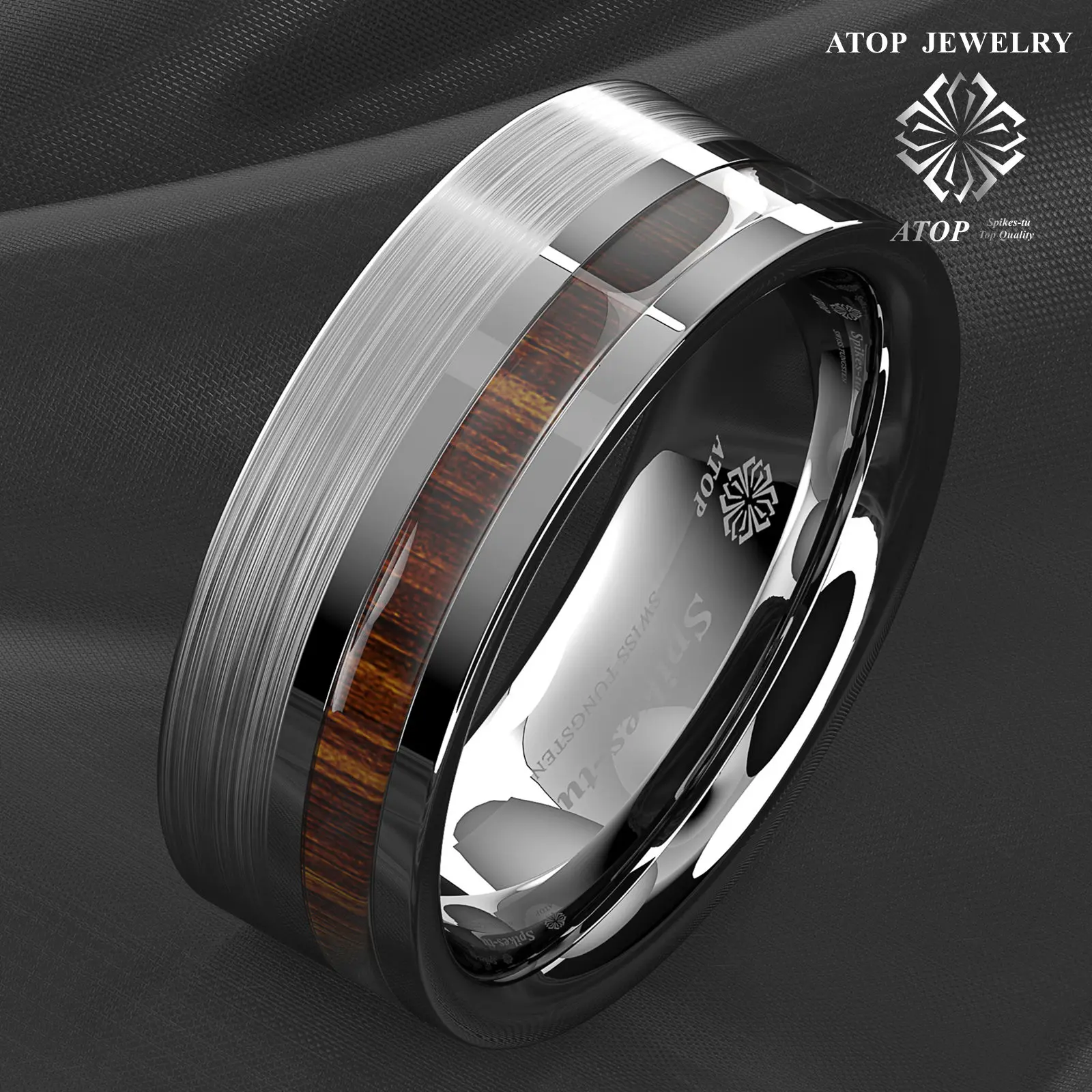 8 мм Серебряное матовое кольцо из карбида вольфрама от центра, свадебное кольцо Koa из дерева
