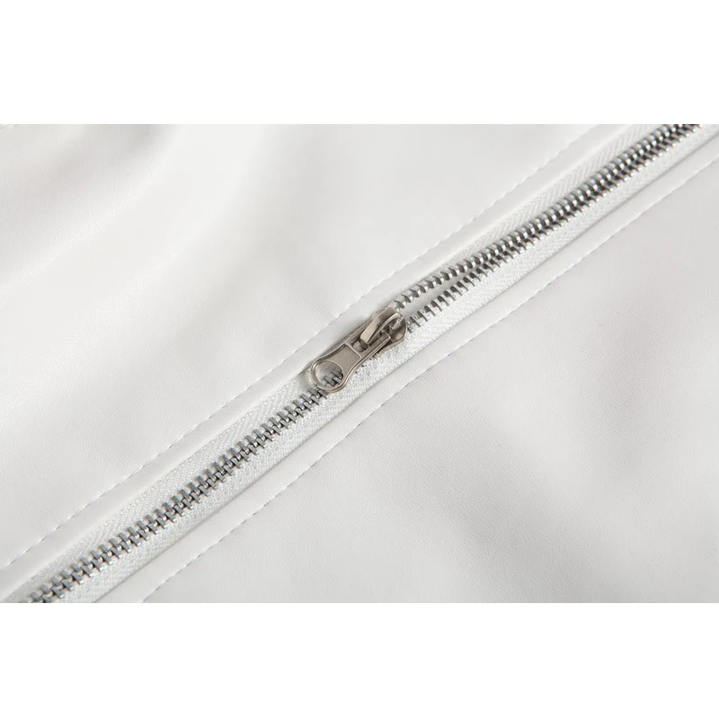 Мужская кожаная куртка на молнии, белая приталенная мотоциклетная куртка из искусственной кожи, в уличном стиле, Осень-зима 2021