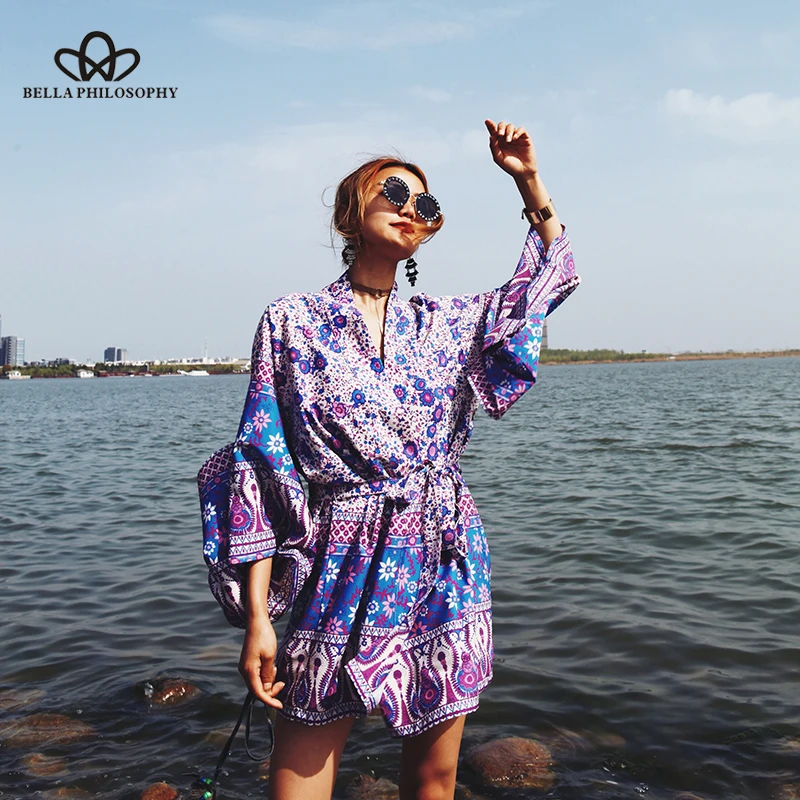 Женская рубашка Bella Philosophy, Летняя Повседневная рубашка с поясом в японском стиле, с рукавом до локтя, 2018