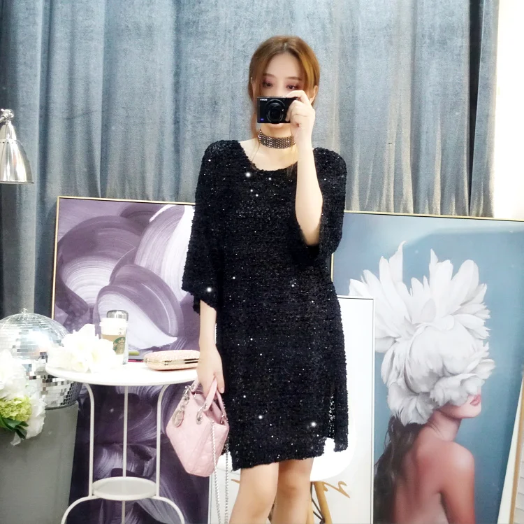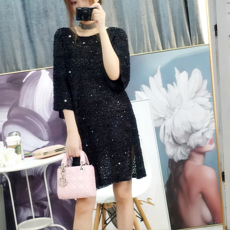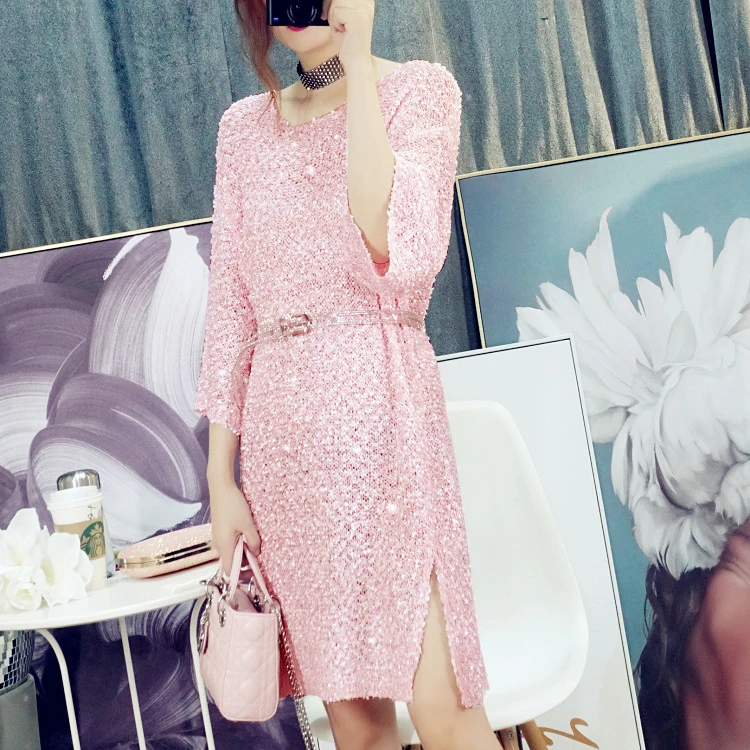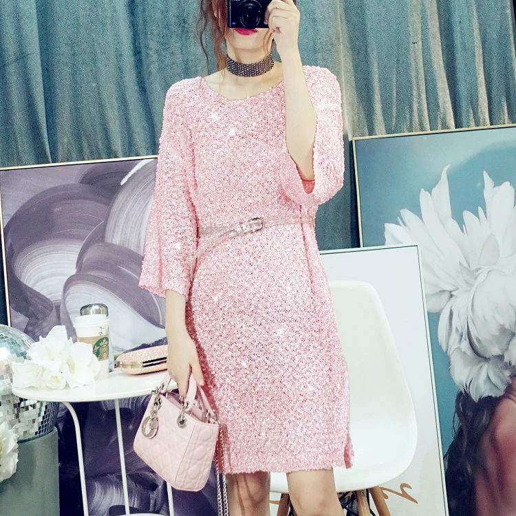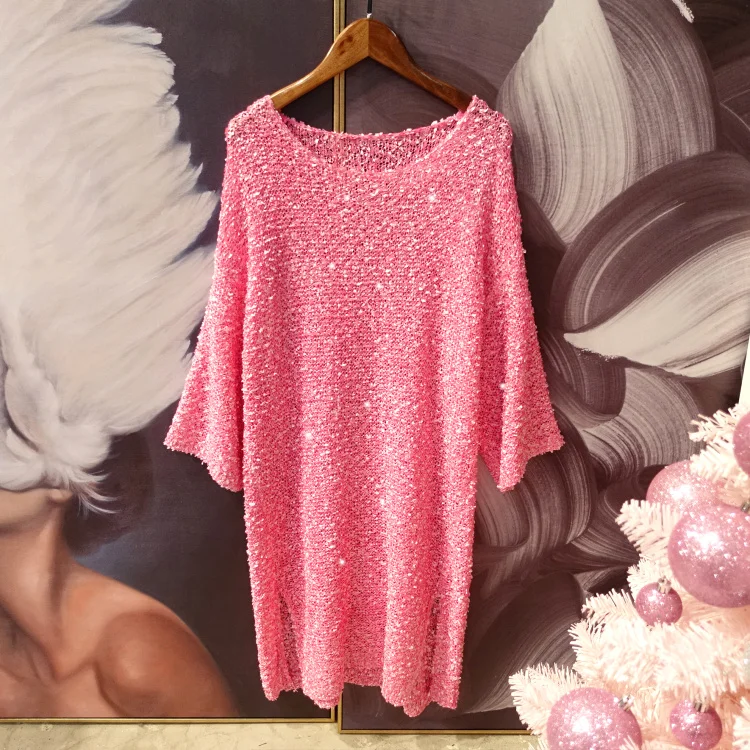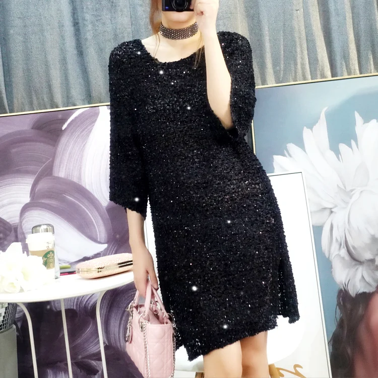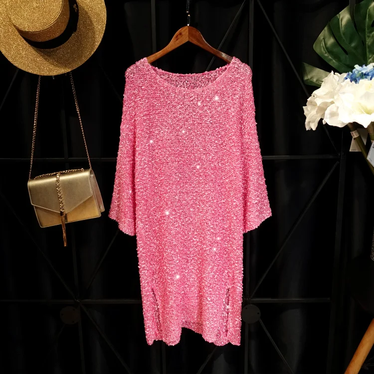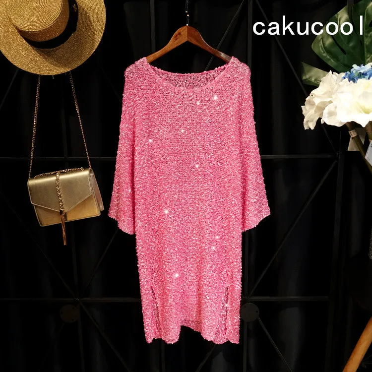 Женское ажурное платье с длинным рукавом Cakucool, повседневное свободное прямое платье с круглым вырезом и Боковым Разрезом, большие весенние платья icon star icon star icon star icon star icon star