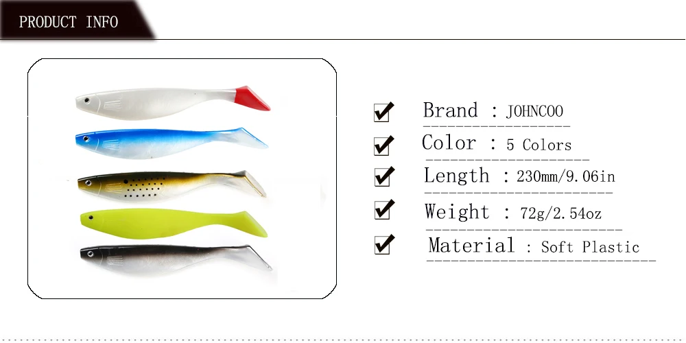 Мягкая приманка JOHNCOO морские приманки, 230 мм, 72 г, приманка для Глубоководной Рыбалки, виброхвост из мягкого пластика, приманки наживка для ловли окуня
