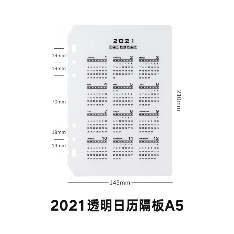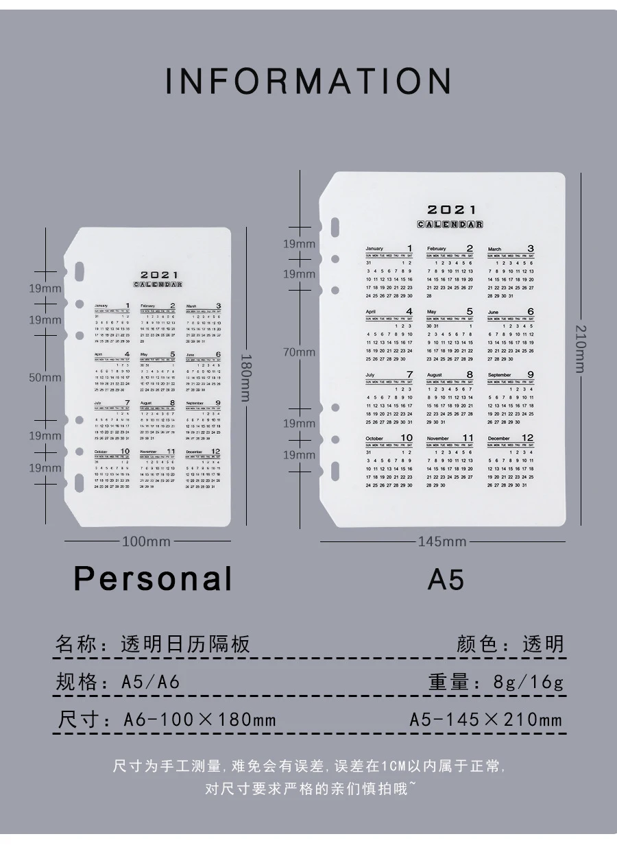 2021 эластичный прозрачный Разделитель с календарем для блокнота A5Индивидуальные Кольца, мягкая пластиковая перегородка для блокнота-планировщика