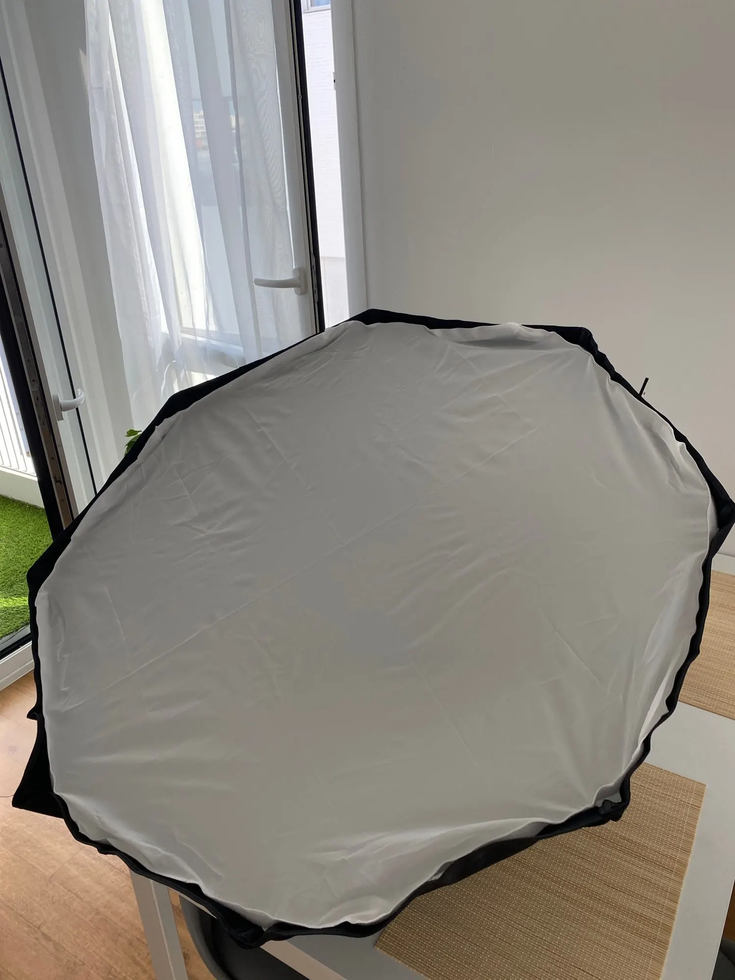 Great softbox Umbrella. Я взял 95 см Потому что я использую Задние вспышки. Проблема с мощностью. Просто Проверено один раз, без растворителя ткани, в душе, мы. Вы видите воздушные шары в отражении в глазу. Нижняя сторона, которую я поставил, заключается в том, что после закрытия ткани диффузора трудно отрегулировать вспышку, за исключением использования с передатчиком. Лучше не забудьте включить вспышку. В противном случае сверху. Я сделаю комментарий после дальнейшего использования.