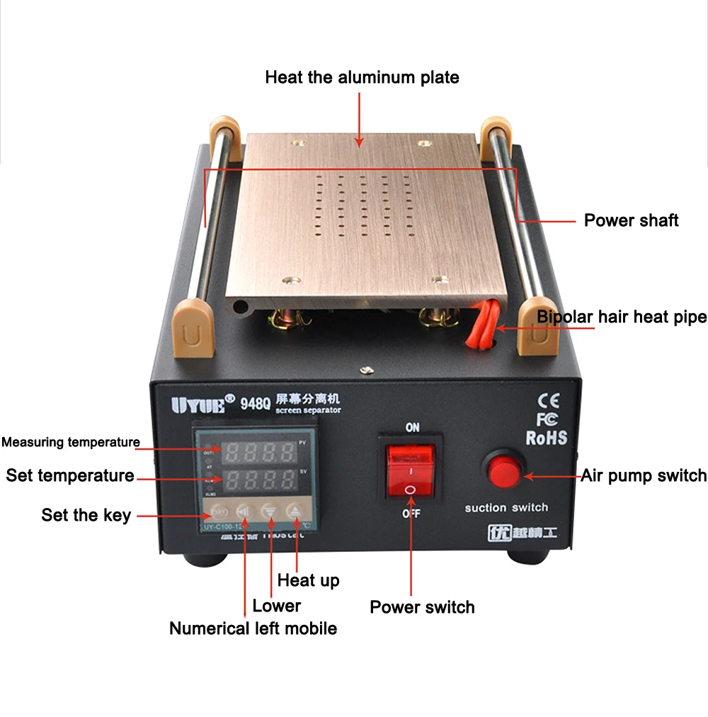 7-дюймовый ЖК-сепаратор/сепаратор для ремонта/сплит/отдельный Встроенный вакуумный насос стеклянный сенсорный экран Восстановленный Uyue 948Q
