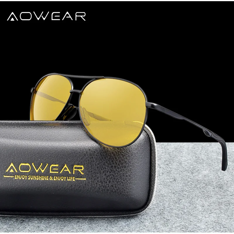 AOWEAR поляризованные авиационные очки ночного видения мужские HD желтые дневные ночные водительские очки-авиаторы для вождения автомобиля солнцезащитные очки для дождливого тумана дня