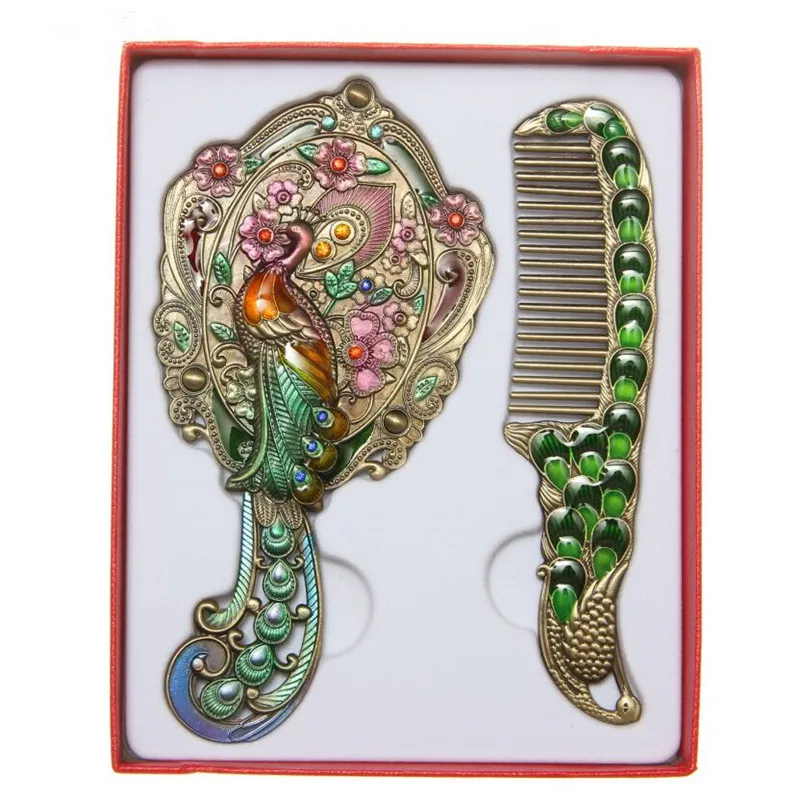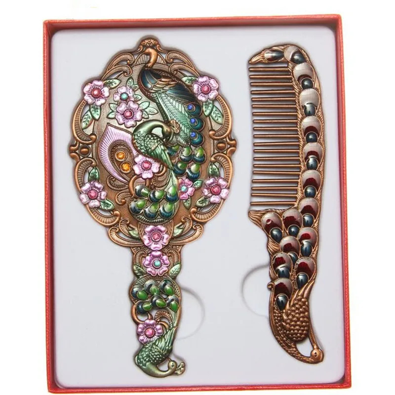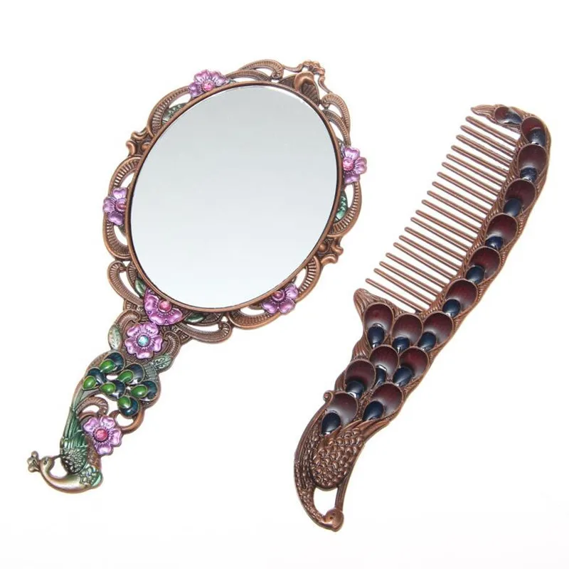 Aishangmei изысканное ретро зеркало для макияжа с павлином maquillaje espejo металлическое портативное зеркало и Расчёска в комплекте винтажное косметическое зеркало